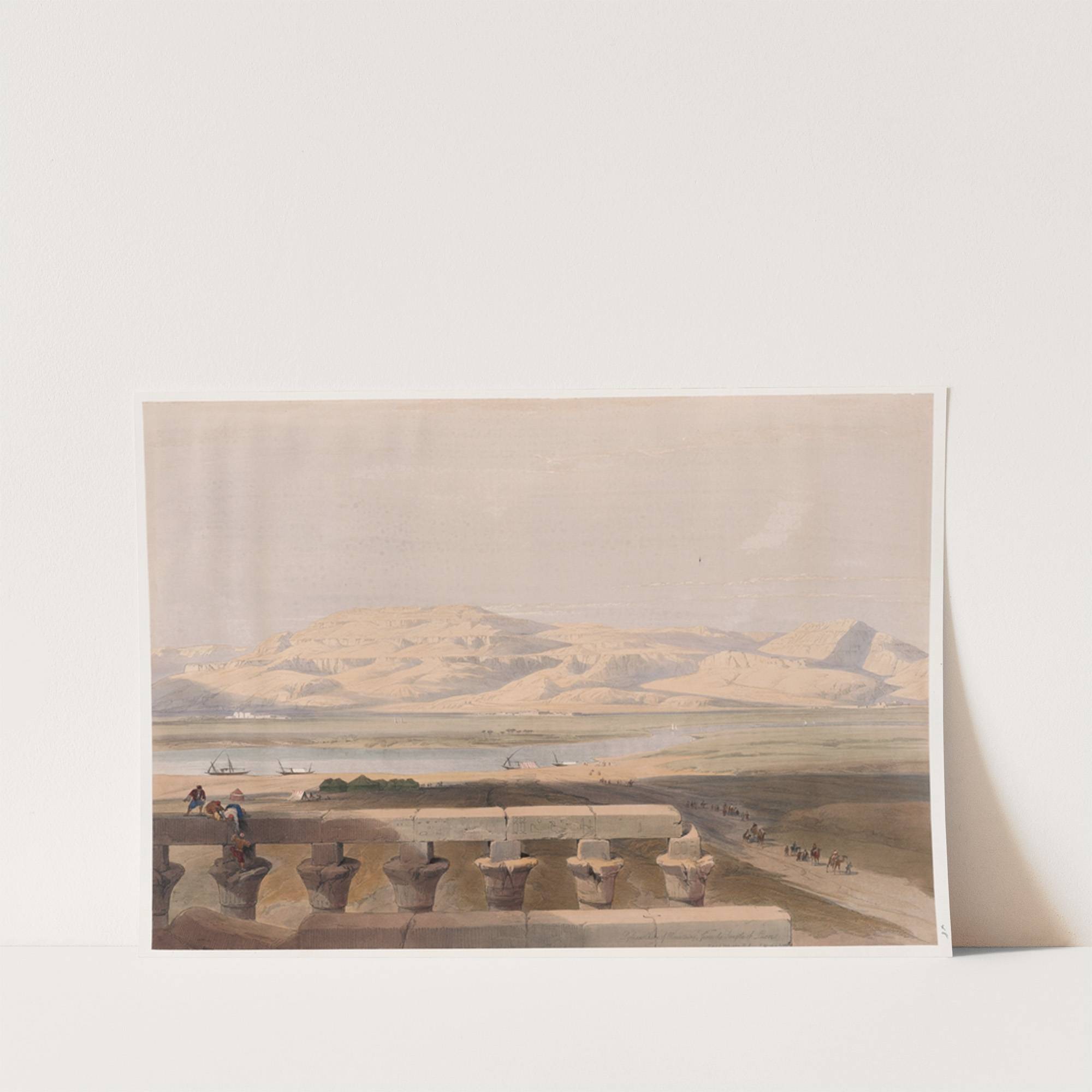 This stunning art print captures "Libyan Chain of Mountains," an exquisite watercolor painting by renowned artist David Roberts. The piece showcases a breathtaking desert landscape bathed in soft, golden sunlight. In the foreground, a series of ancient, cylindrical stone towers...