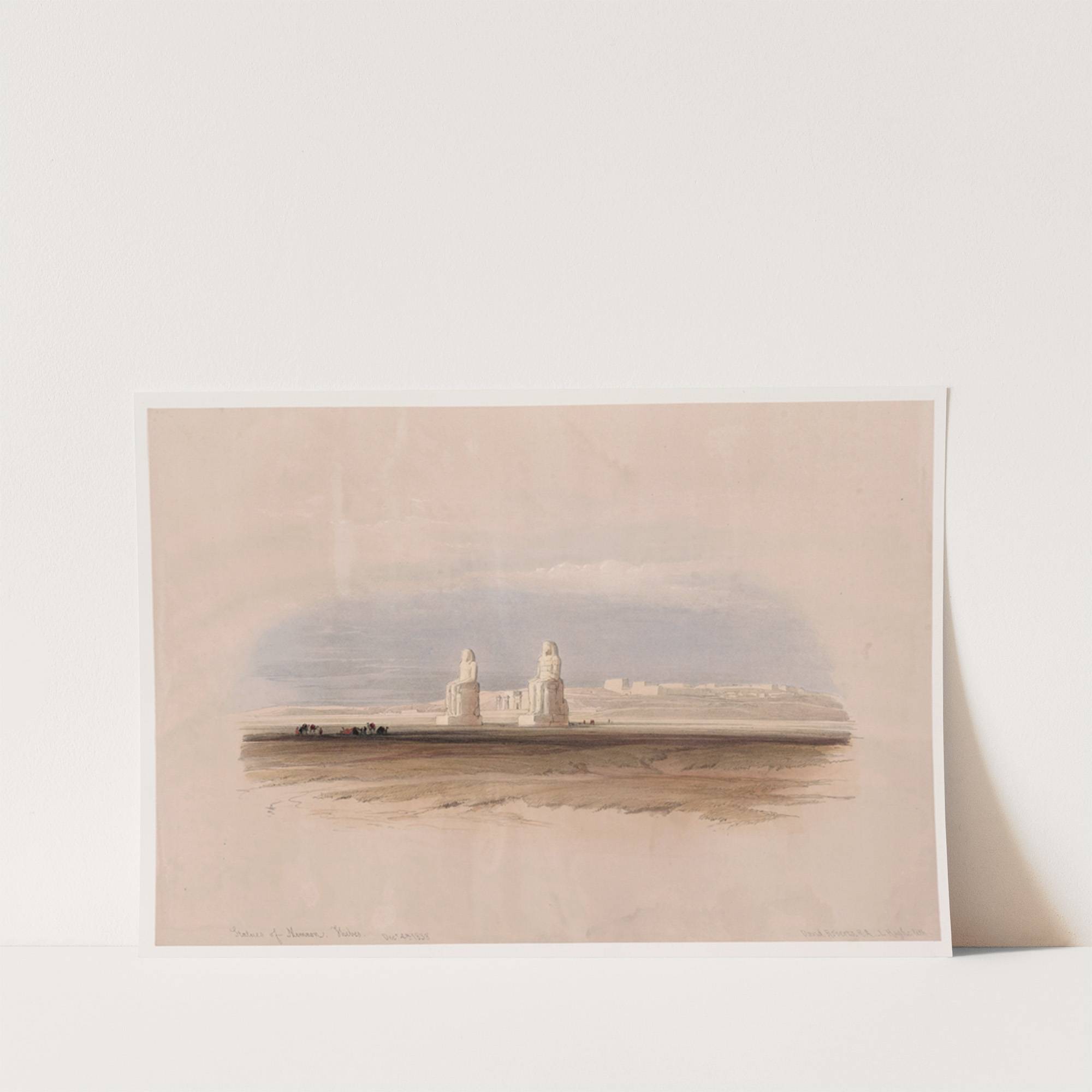 This elegant art print showcases "Statues of Memnon, Thebes" as seen through the skilled eyes of artist David Roberts. Painted in December 4th, 1838, this piece captures a serene desert landscape with two prominent white columns standing majestically in the...
