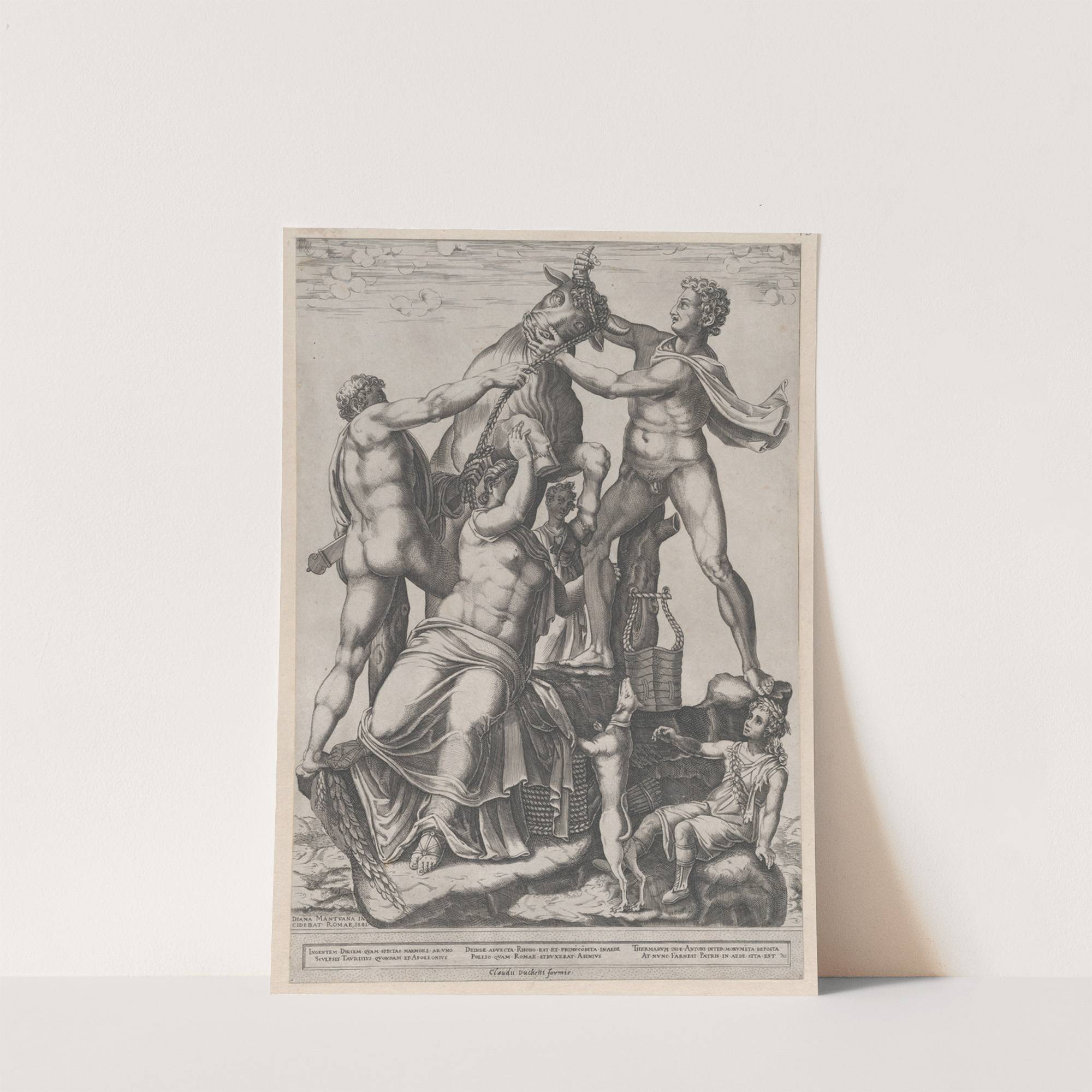 Speculum Romanae Magnificentiae- Amphion and Zethus Tying Dirce to a Wild Bull -The Farnese Bull (1581) by Diana Scultori - Wall Art Print