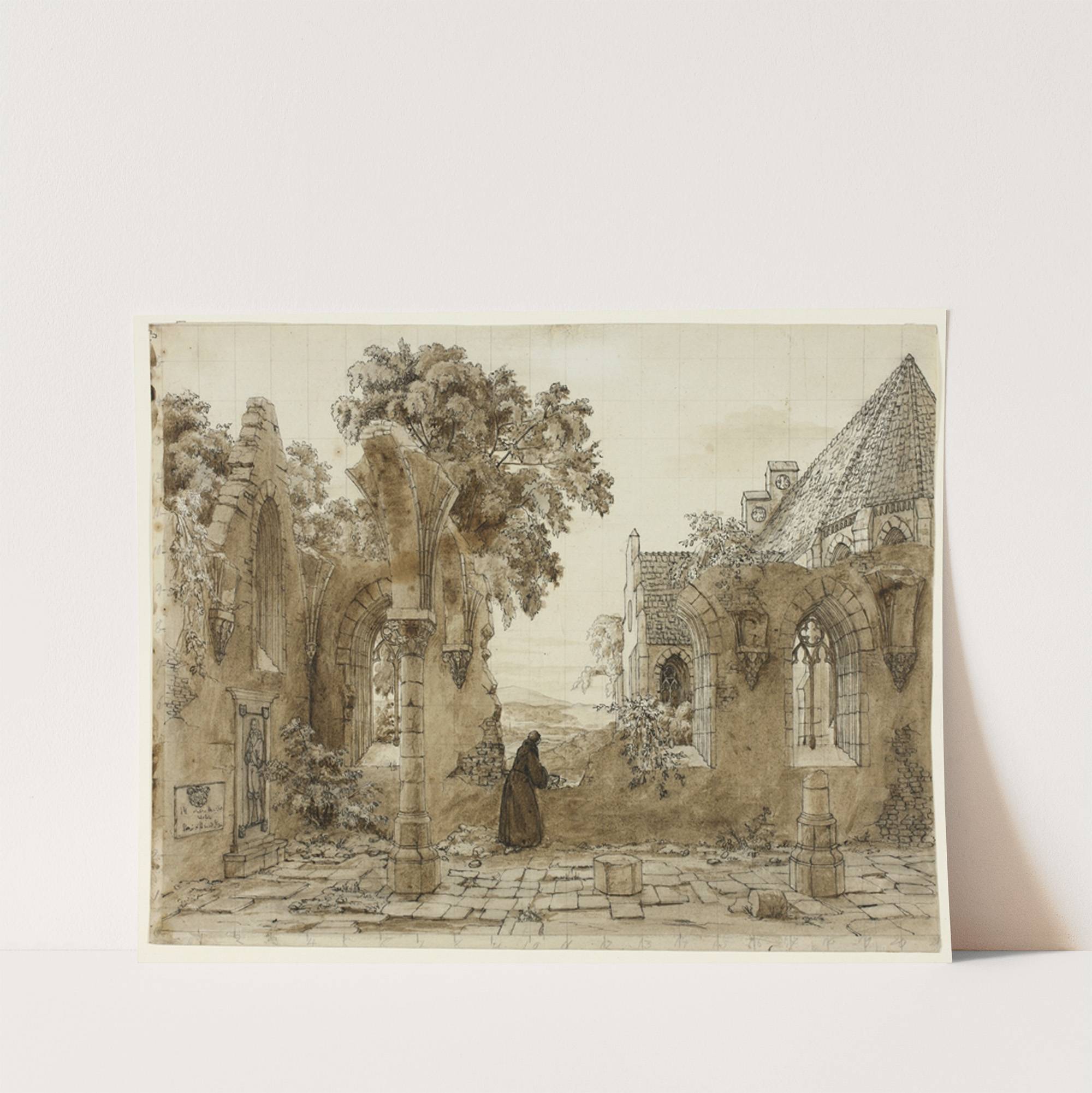 Monk in the Ruins of a Monastery (1820-1830) by Domenico Quaglio the Younger - Wall Art Print