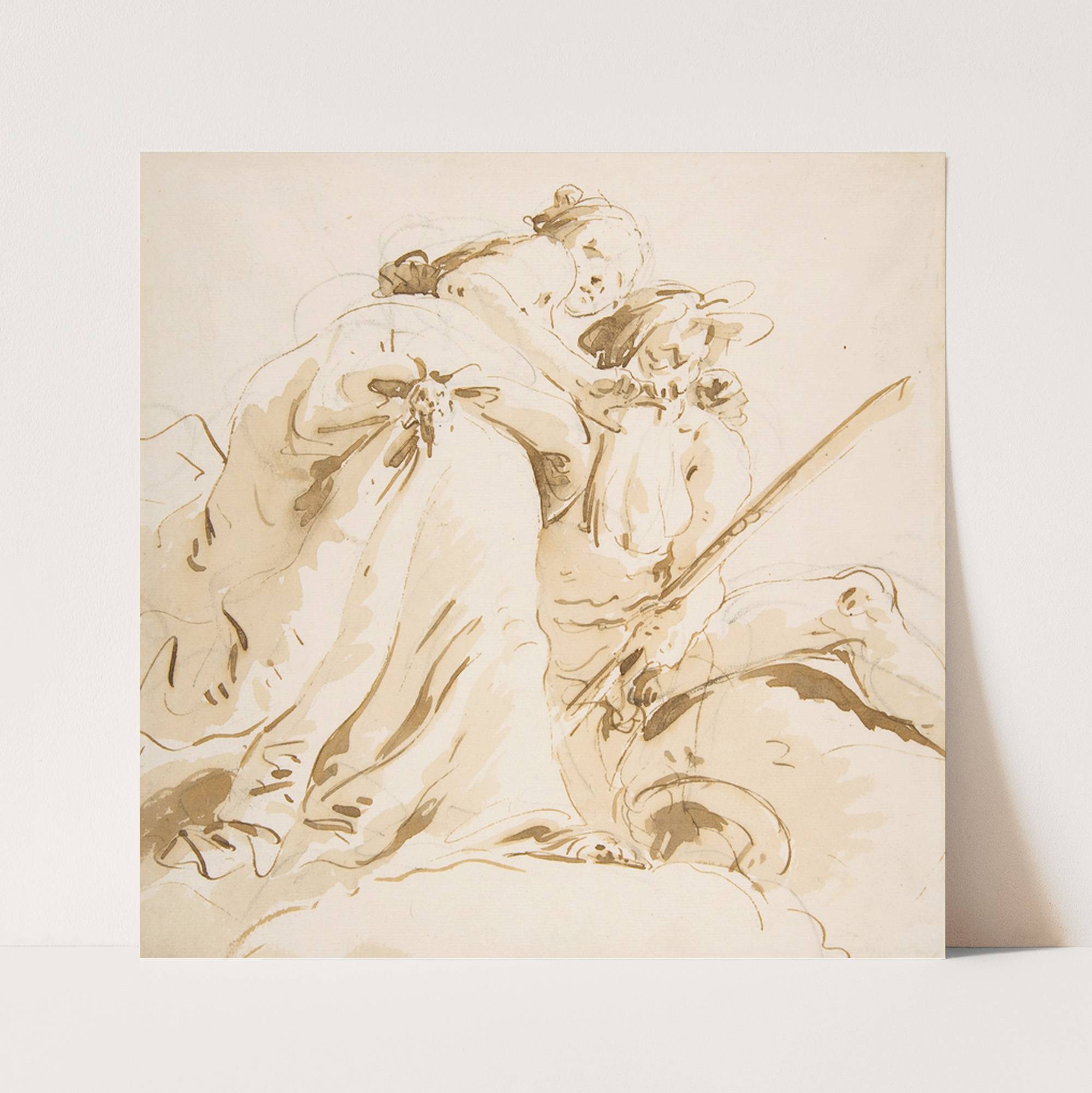 Seated River God and Standing Female Attendant by Giovanni Battista Tiepolo - Wall Art Print
