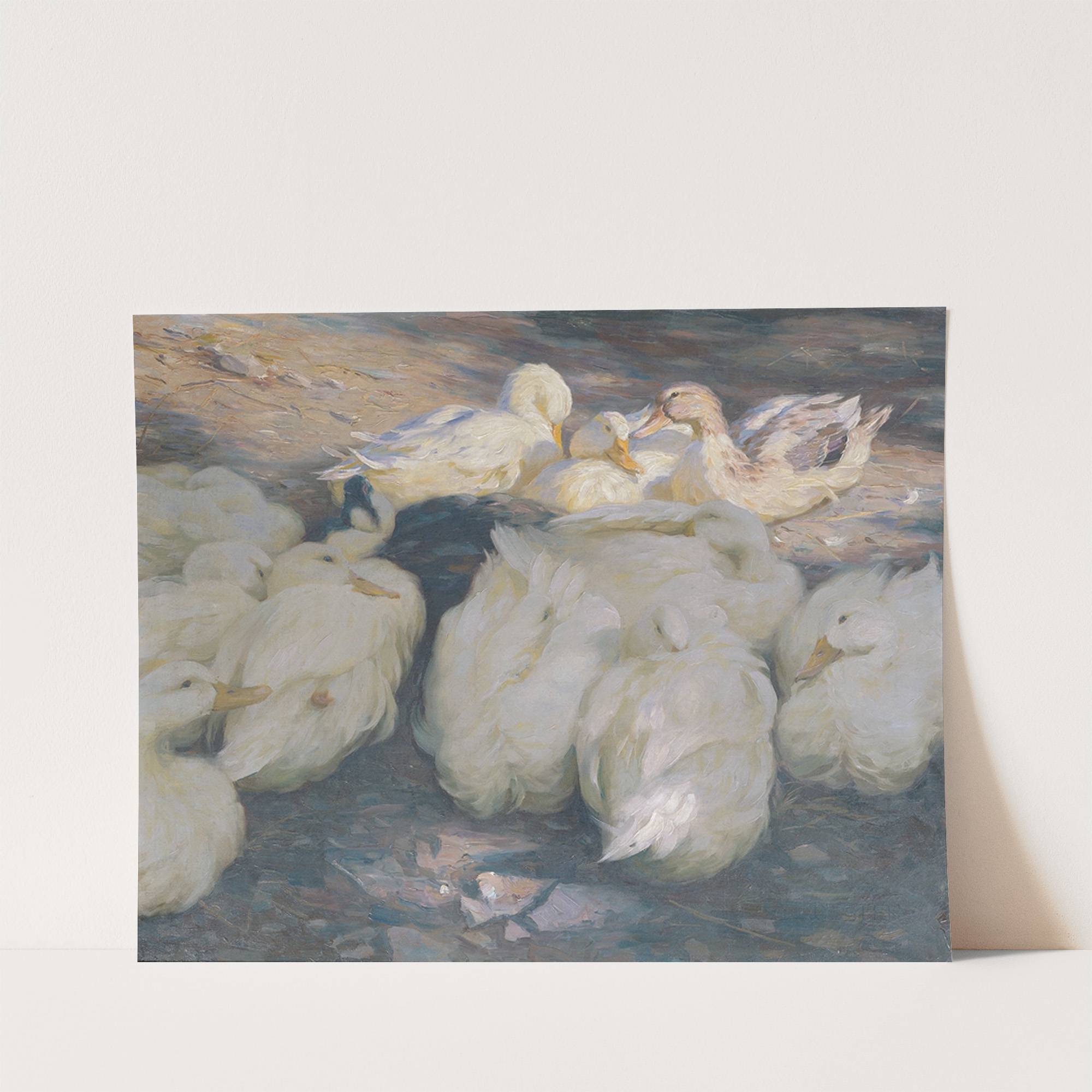 This charming painting features a serene group of ducks and ducklings basking in the gentle glow of sunlight. Created by artist Alexander Koester in his style "In der Abendsonne," this piece captures the warm, tranquil atmosphere with delicate brushstrokes and...