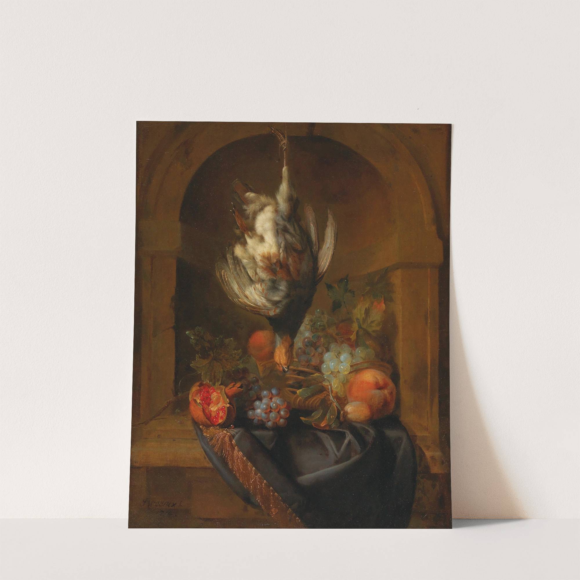 A partridge and fruit in a partially draped niche by Jan Weenix - Wall Art Print