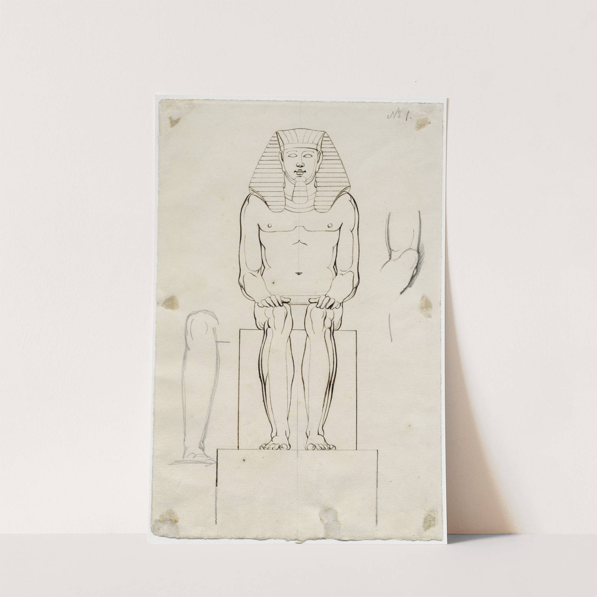 Beeld v.e. en face zittende Egyptische koning by David Humbert de Superville - Wall Art Print