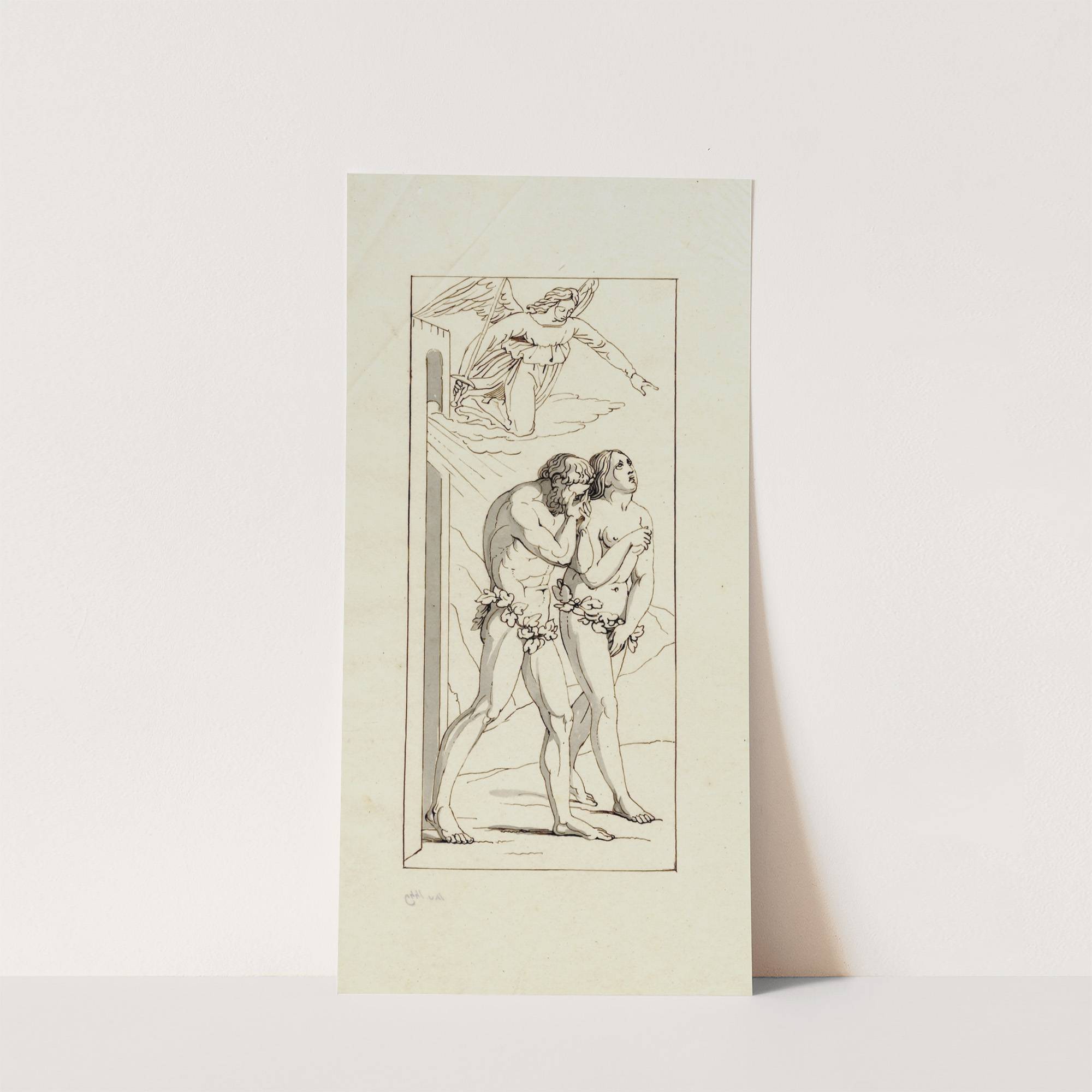 De engel verdrijft Adam en Eva uit het paradijs by David Humbert de Superville - Wall Art Print