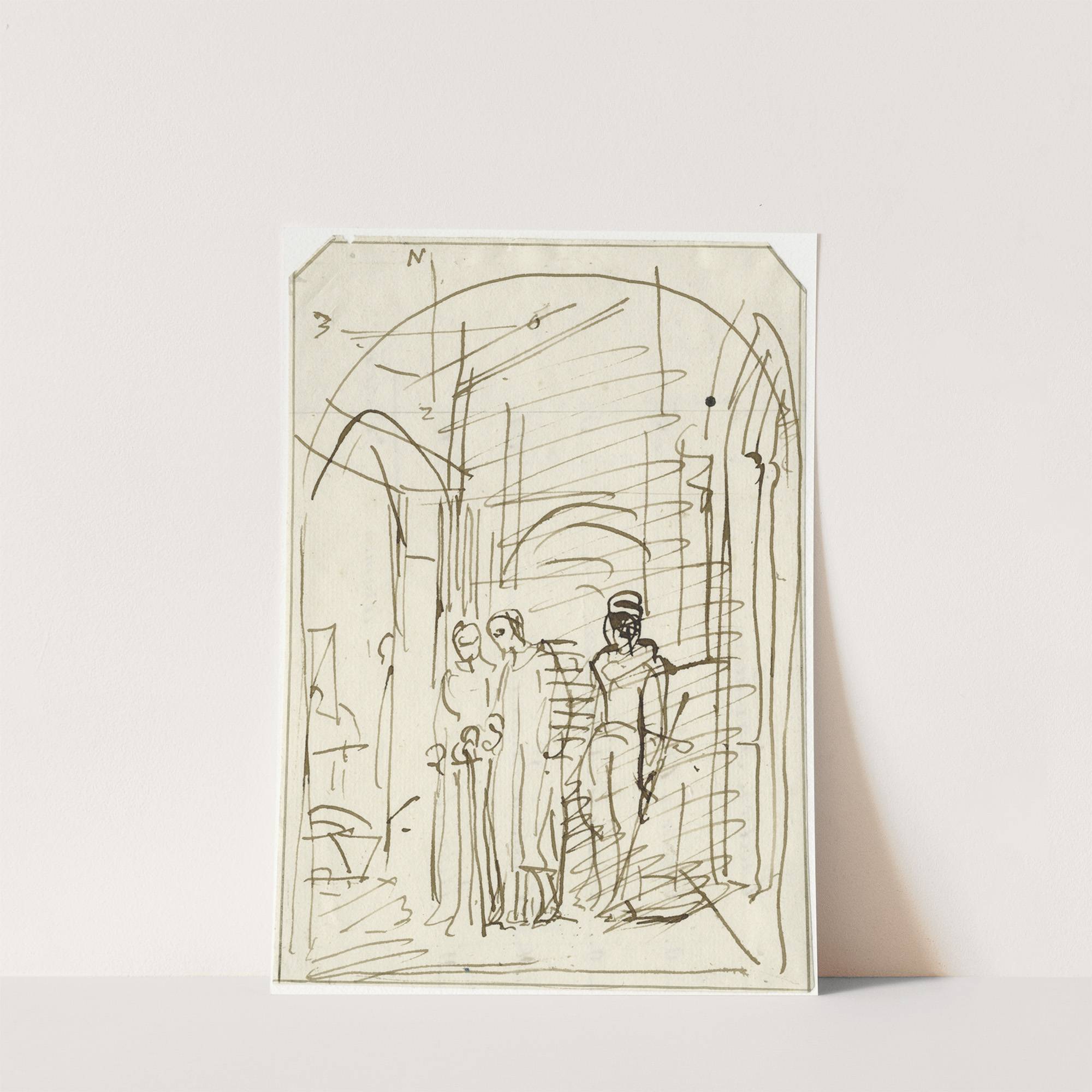 Figuren in portaal: Oldenbarnevelt voor de executie by David Humbert de Superville - Wall Art Print
