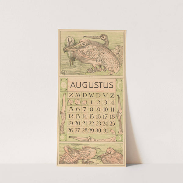 Kalenderblad augustus met pelikanen by Theo van Hoytema - Wall Art Print