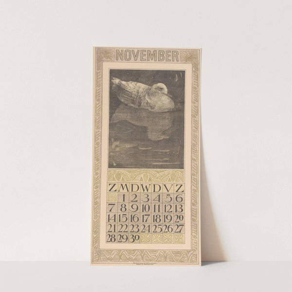 Kalenderblad november met drijvende eend by Theo van Hoytema - Wall Art Print