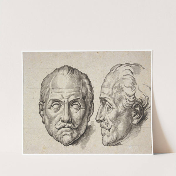 Kop Willem van Oranje, en face en en profil: sculptuur by David Humbert de Superville - Wall Art Print