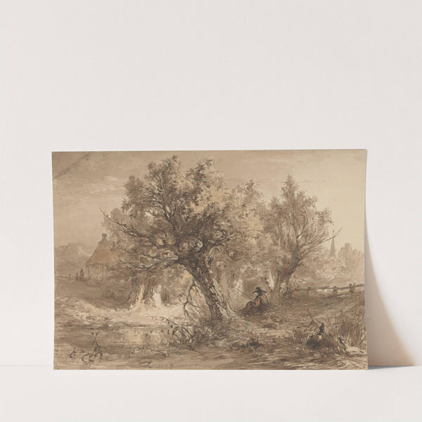 Landschap met hengelaar onder wilgen by Maria Vos - Wall Art Print
