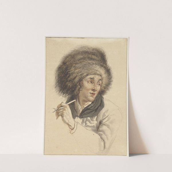 This charming art print features "Man with Fur Hat and Pipe" by Abraham van Strij, a masterful piece of 17th-century portraiture. The subject is a young man with soft, fair skin and expressive brown eyes, gazing thoughtfully to the side....