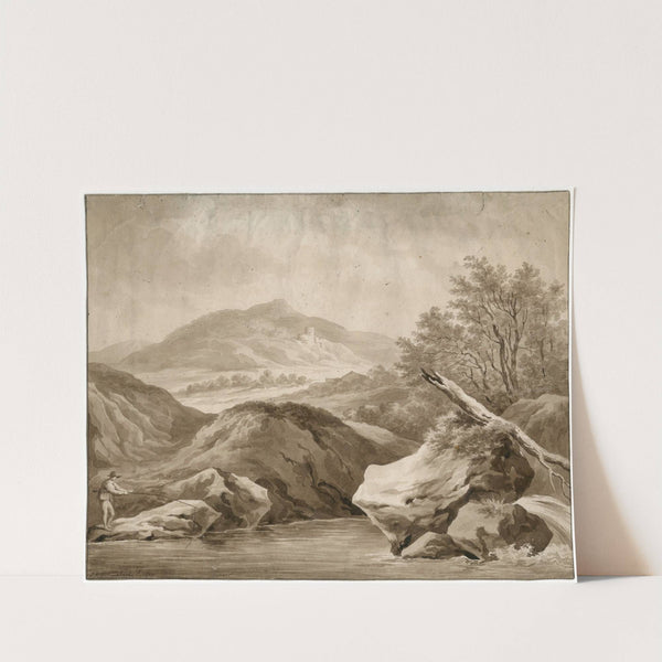 Mountainous landscape with a fisherman by David Humbert de Superville - Wall Art Print