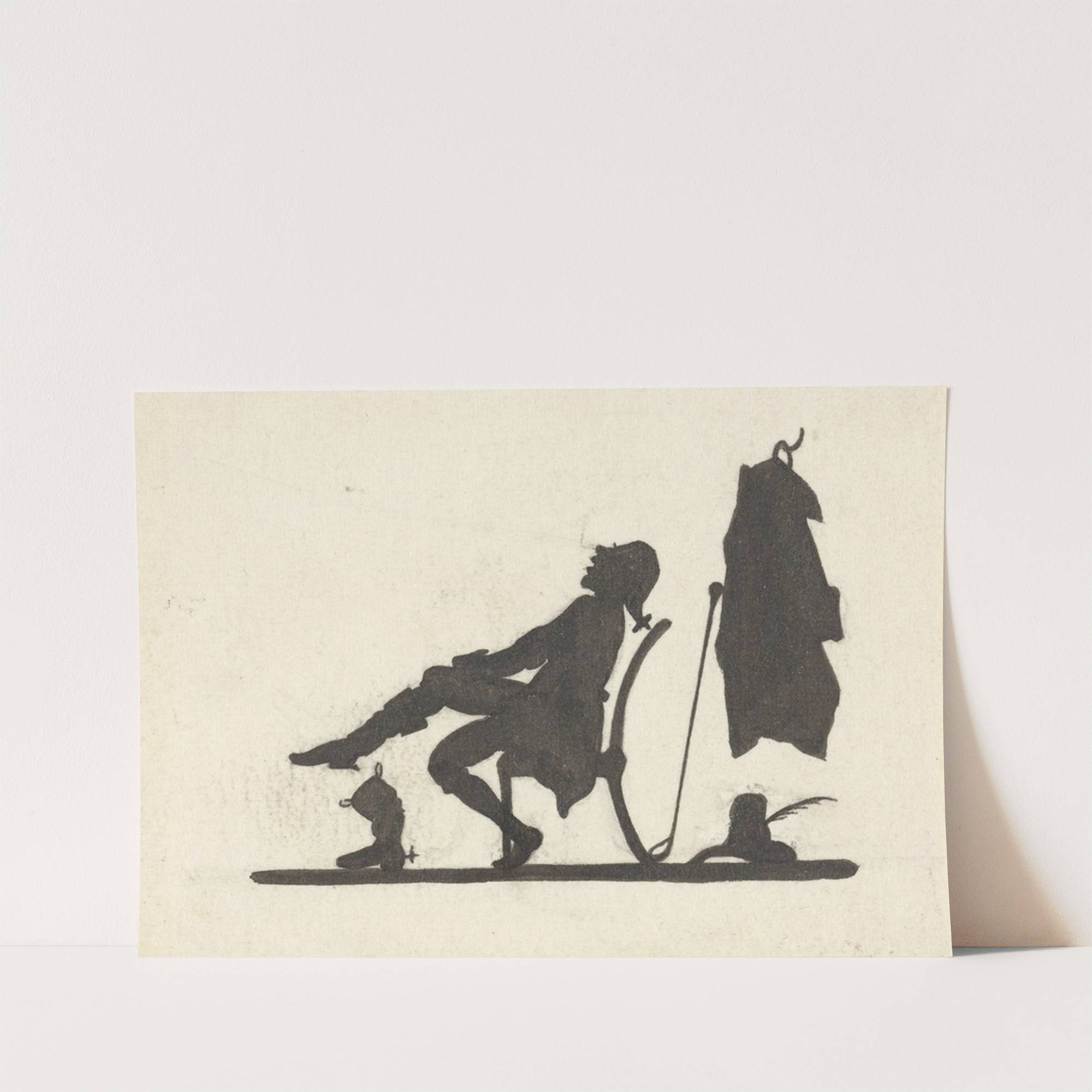 Silhouet van de man die zijn laarzen aantrekt by Nelly Bodenheim - Wall Art Print