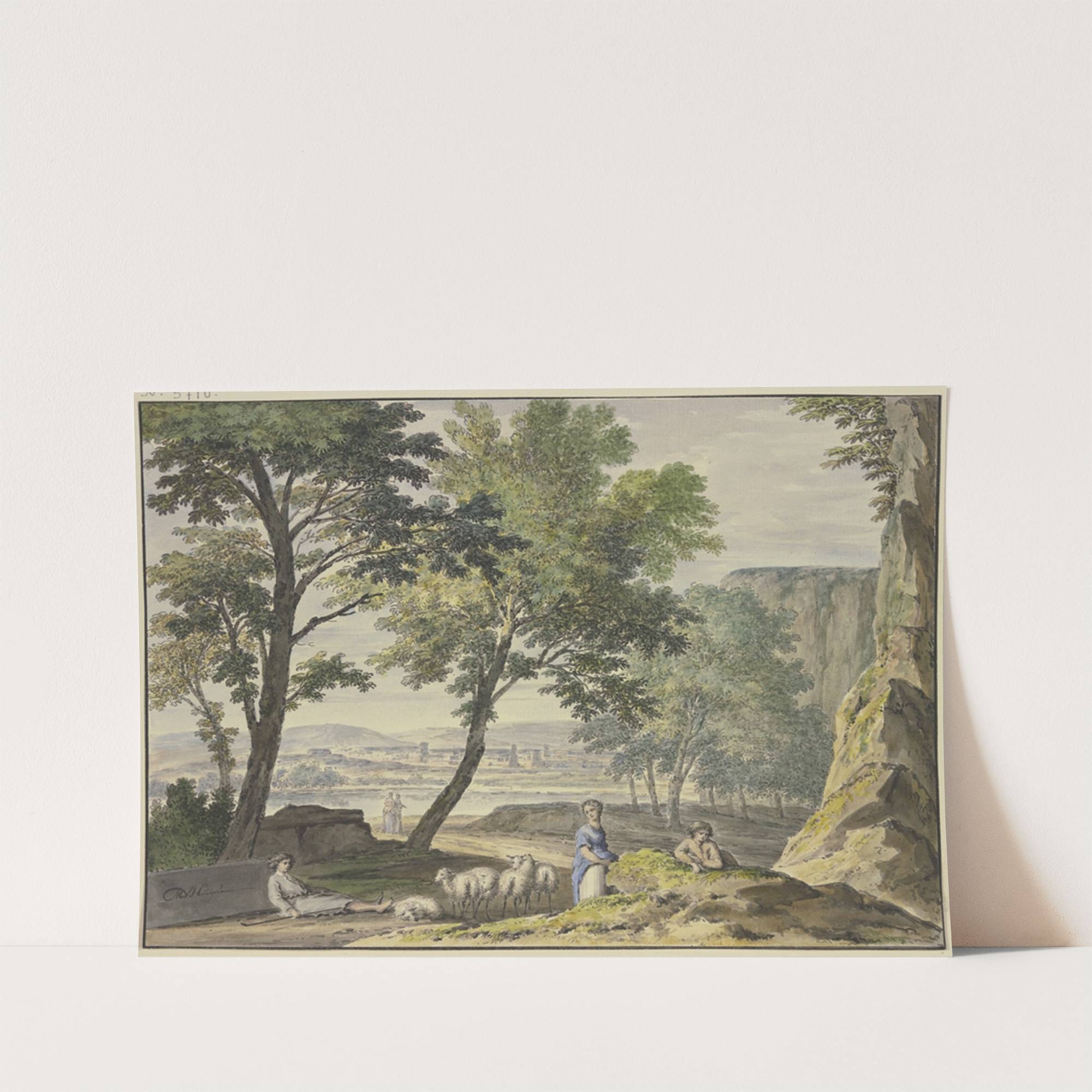 Stilvolle Landschaft mit Schafhirten, in der Ferne eine Stadt by Jan van Huysum - Wall Art Print
