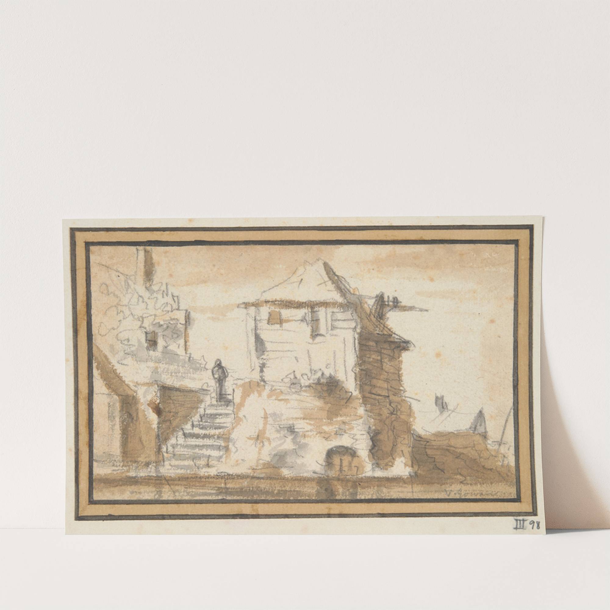 Two Buildings with a Stairway by Jan van Goyen - Wall Art Print