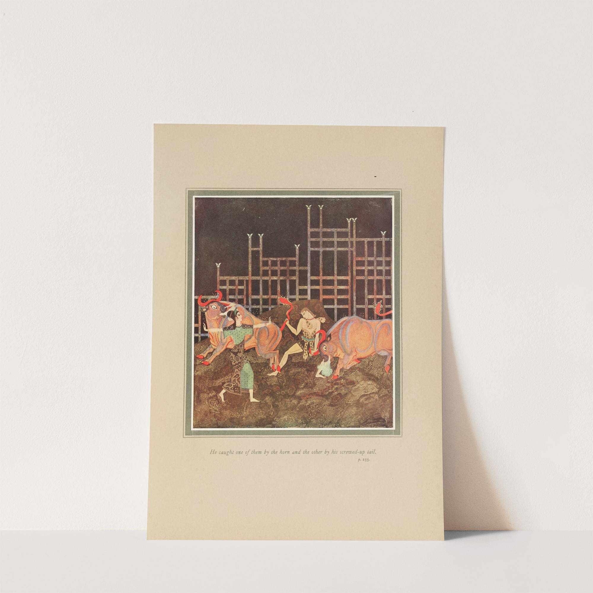 He caught one of them by the horn and theother by his screwed-up tail by Edmund Dulac - Wall Art Print