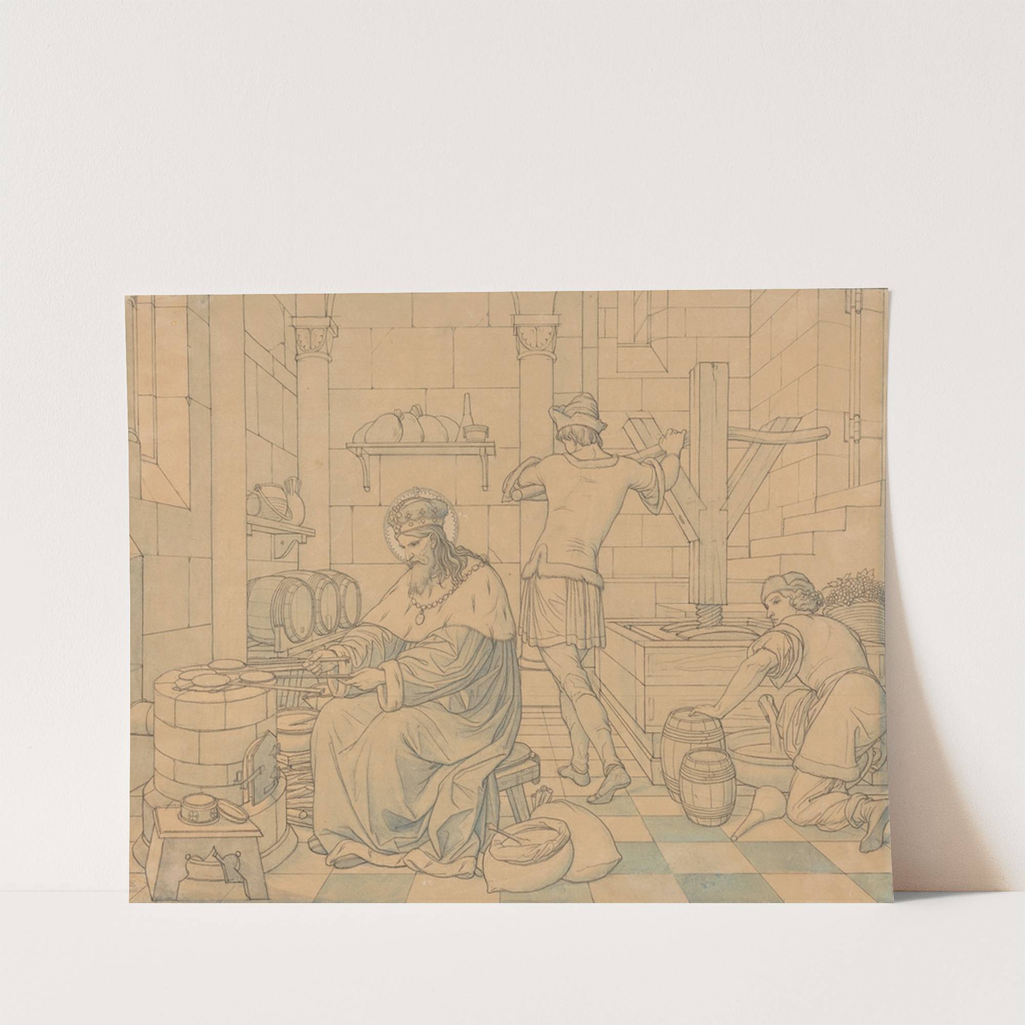 Saint Wenzel Cooking Hosts as Two Youths Press Wine (1866) by Eduard von Steinle - Wall Art Print