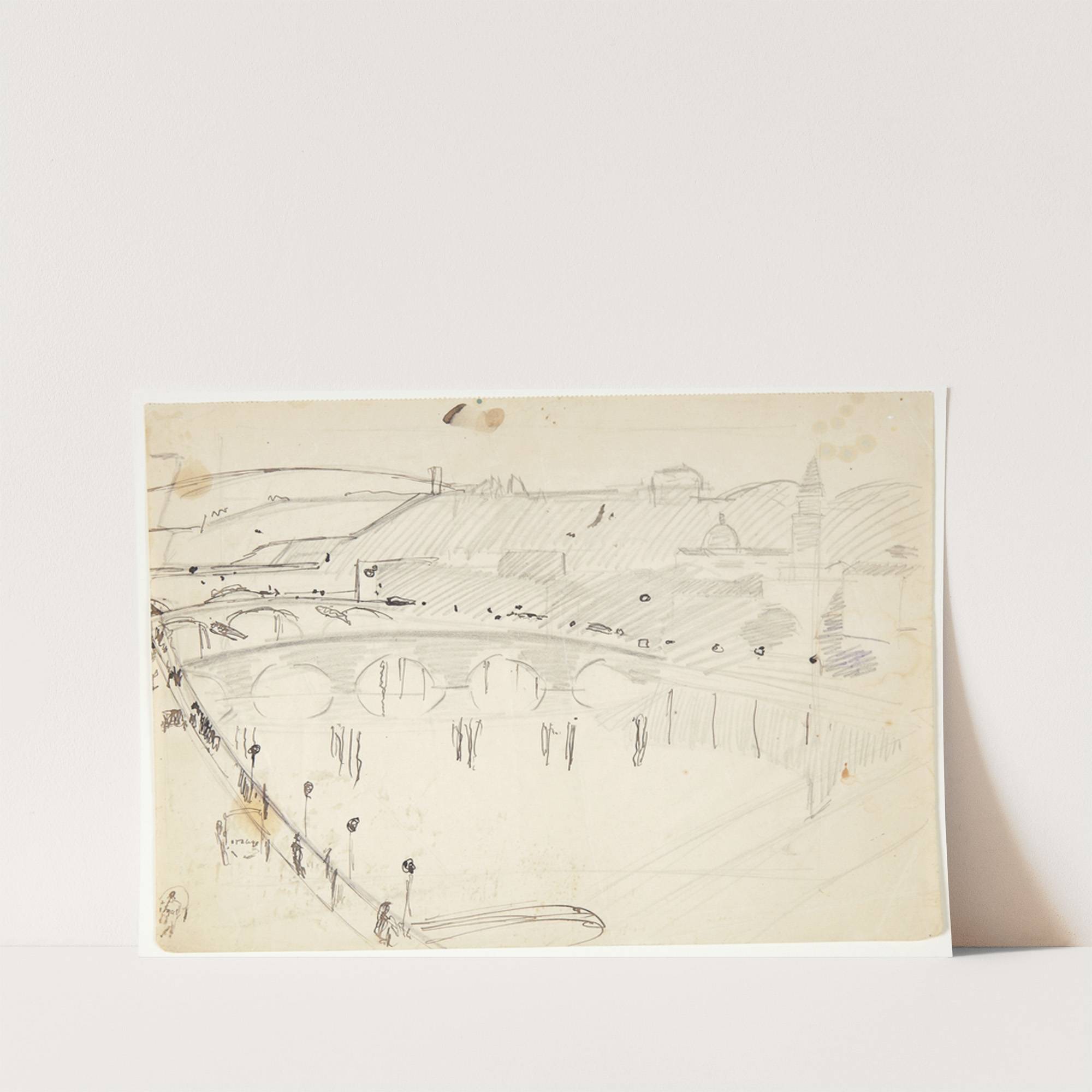 Udsigt fra et vindue ved Lungarnoen over floden mod Santo Spirito og San Miniatohøjderne, Firenze by Edvard Weie  - Wall Art Print