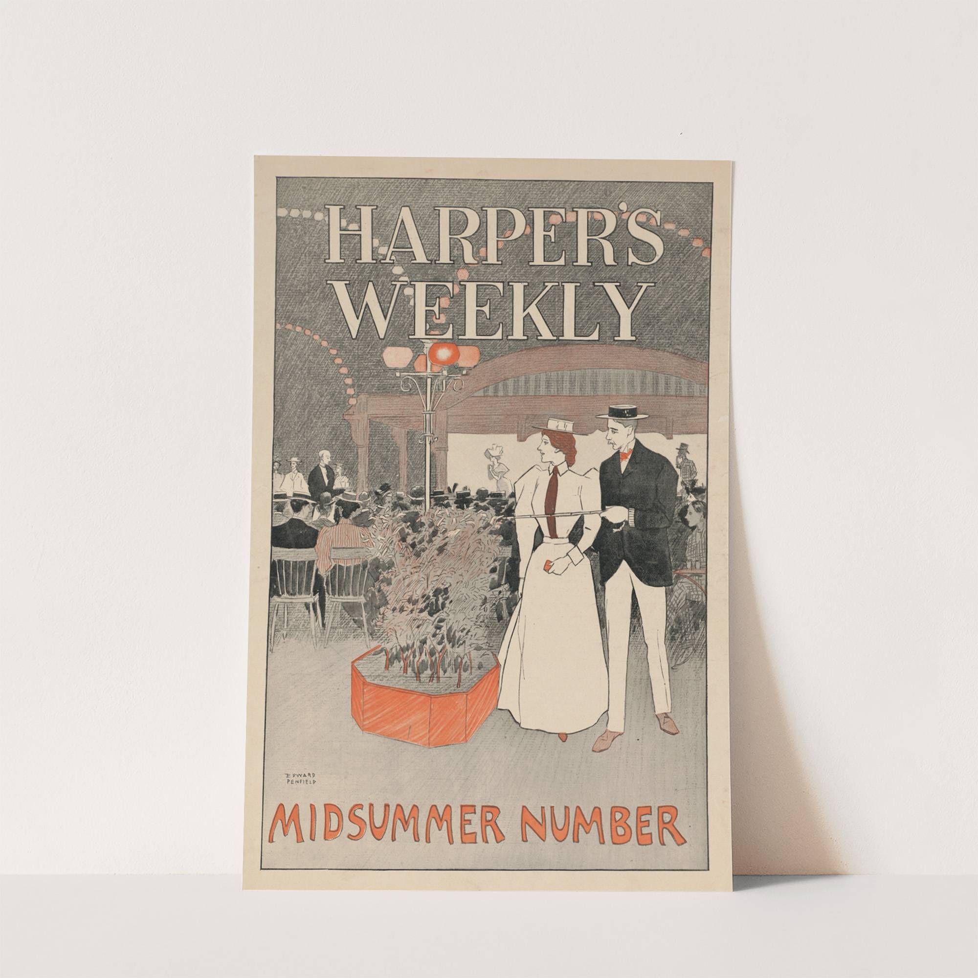 Man and woman sit in a crowded café looking over a crowd with the man pointing with a cane by Edward Penfield - Wall Art Print