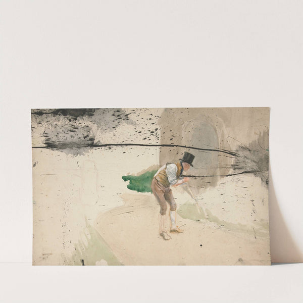 Man in tophat and shirtsleeves sweeping a walkway by Edwin Austin Abbey - Wall Art Print