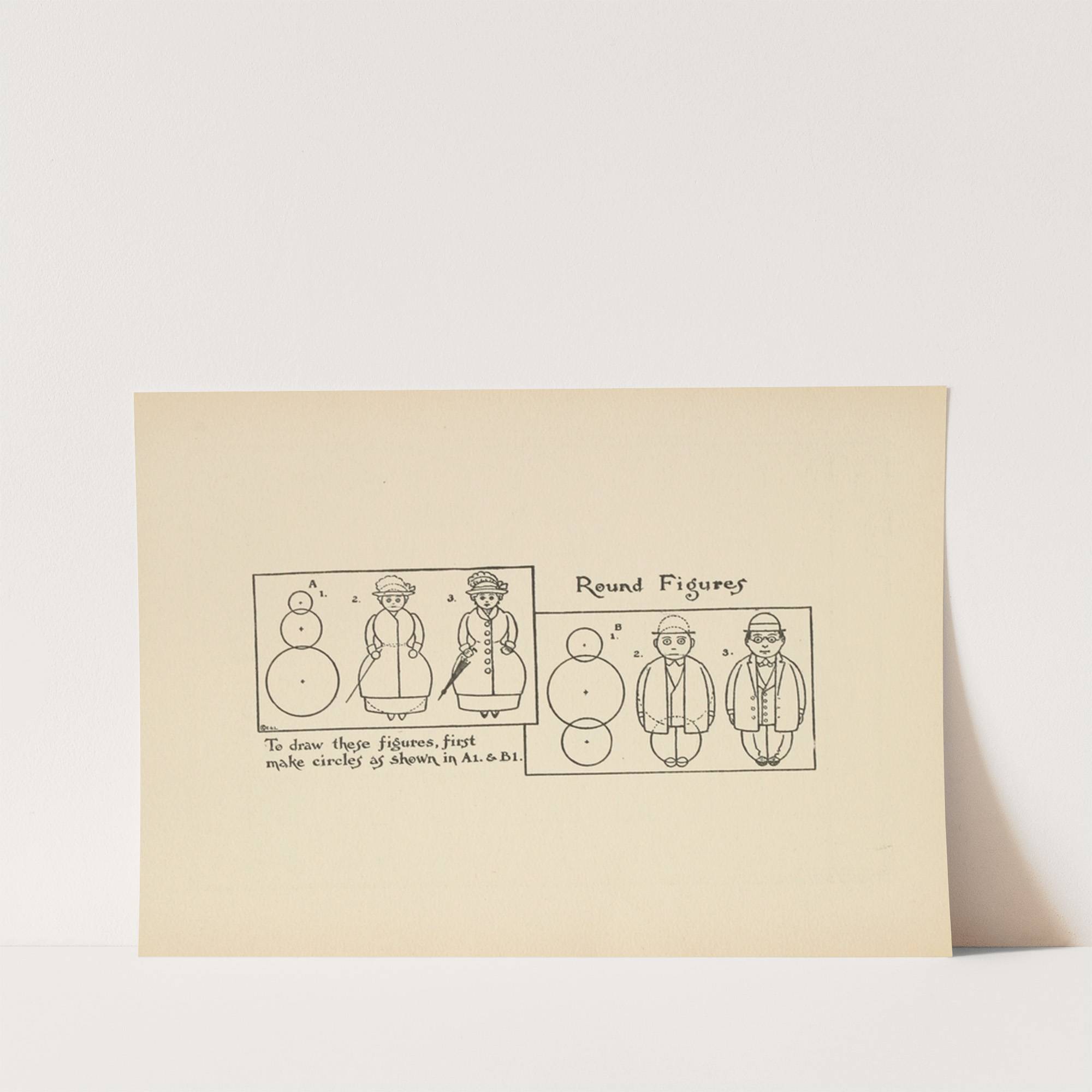 This digital line drawing by Edwin George Lutz features two round figures labeled "Round Figures" in a simple, minimalist style. The left section shows three versions of the same figure: a basic circle (bottom), an enhanced version with arms and...
