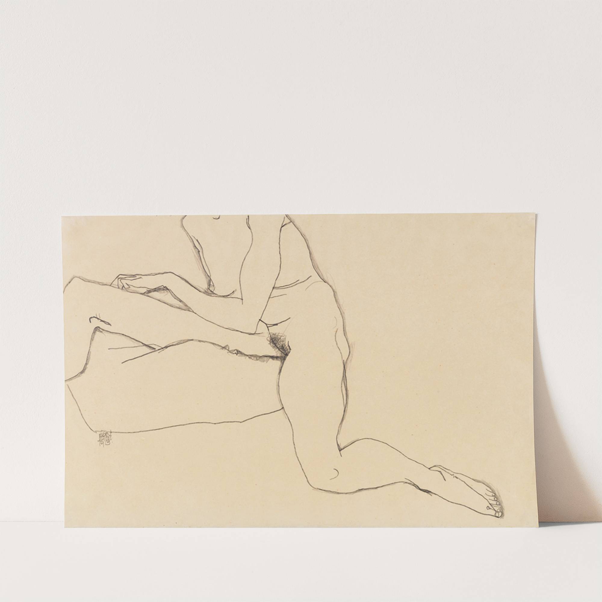 Sitzendes Mädchen mit ausgestrecktem Arm und Bein (1913) by Egon Schiele - Wall Art Print