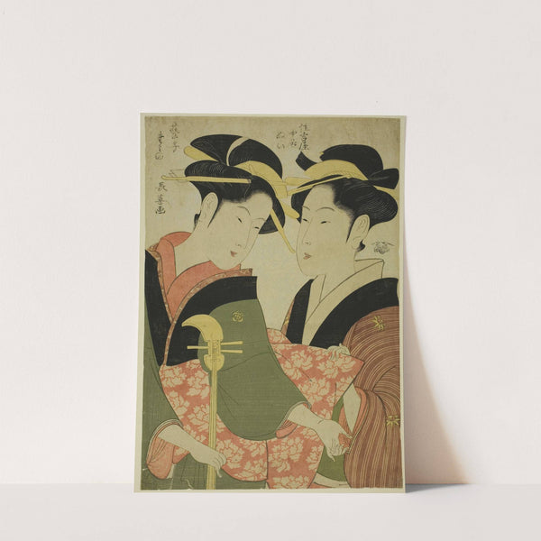 The Entertainer Tamino and the Serving Girl Nui of the Sumiyoshiya by Eishōsai Chōki - Wall Art Print