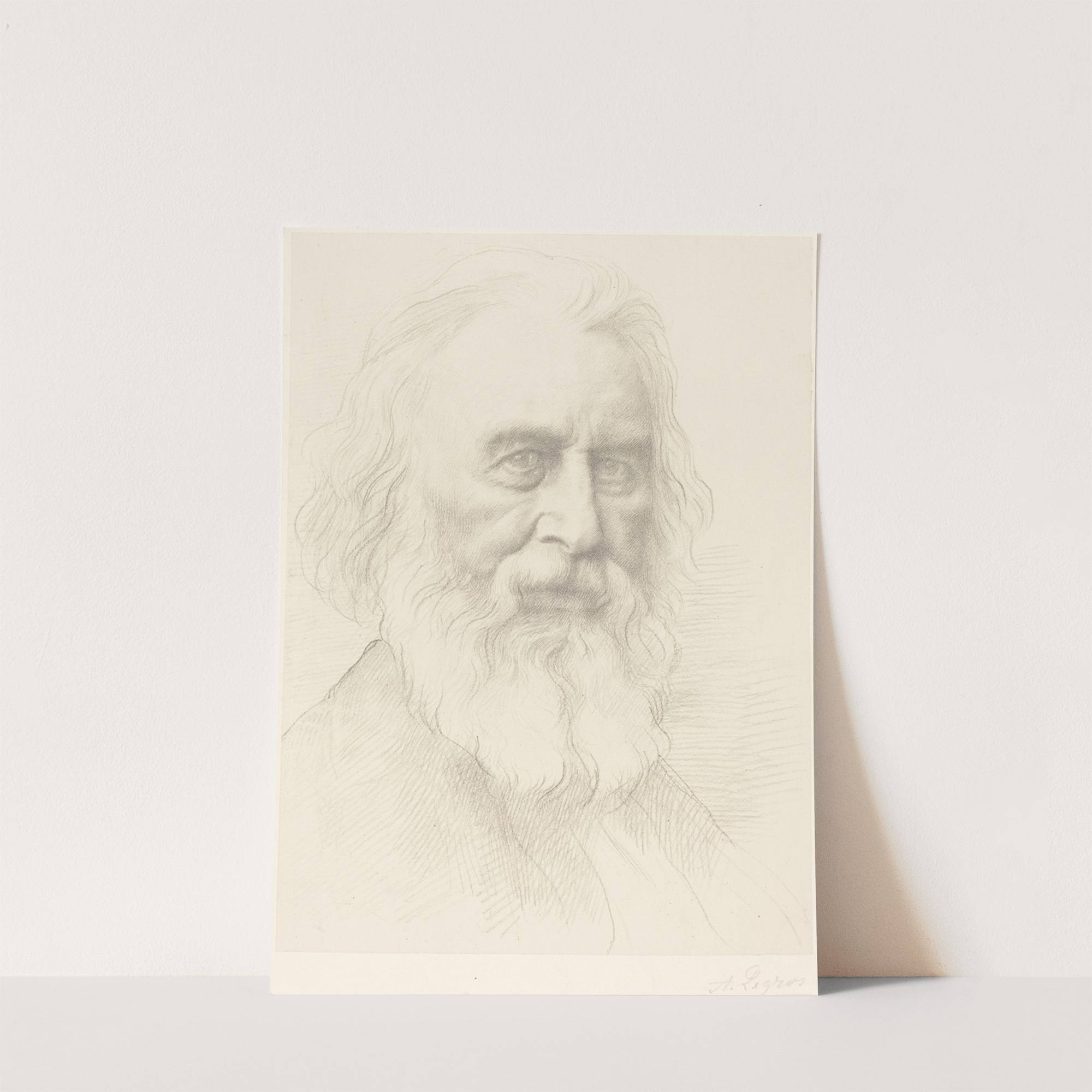 This monochromatic pencil drawing features the portrait of an elderly man with a long, flowing beard and deep-set eyes that convey wisdom and depth. The artist, H.W. Longfellow, has skillfully used fine lines to capture the texture of the beard...
