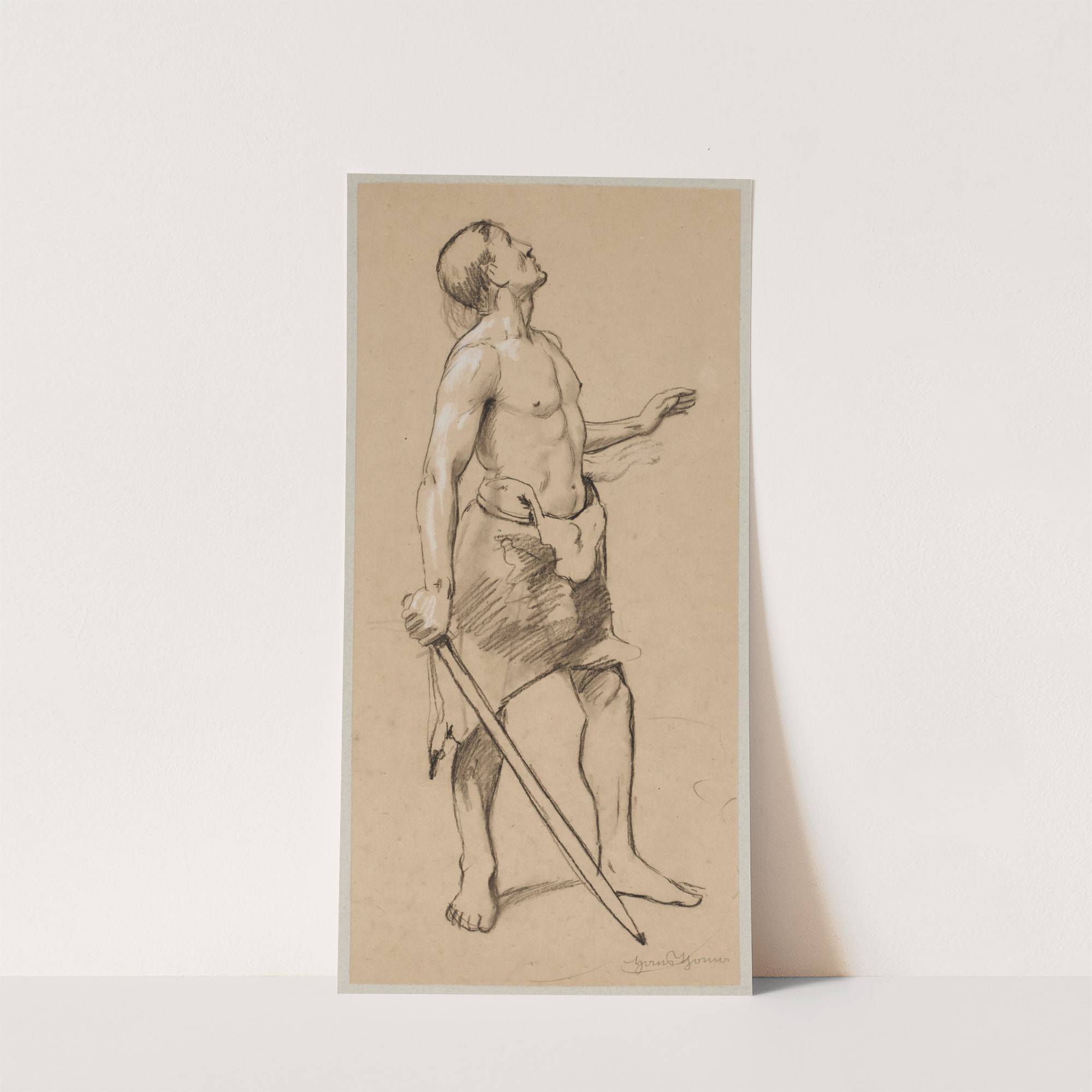 Study of the Figure of a Semi-Nude Male in a Leather Loincloth Holding a Sword (1886) by Hans Thoma - Wall Art Print