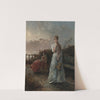 This evocative art print features "Un Soir À La Mer" by Alfred Stevens, capturing the serene yet poignant ambiance of an evening by the sea. The central figure is a young woman with fair skin, auburn hair gently parted and...