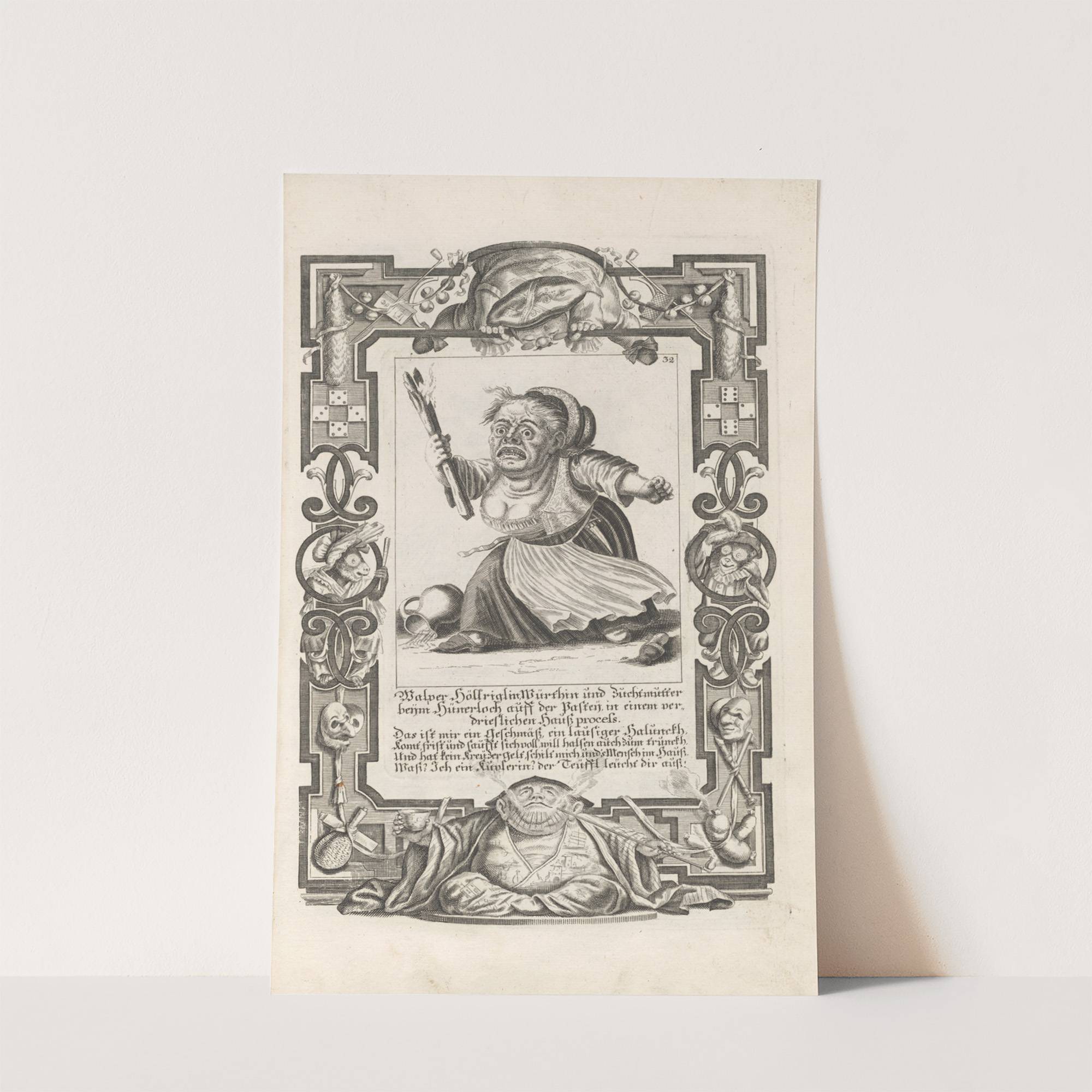 Malper Höllriglin, Würthin und Zuchtmutter beym Hünerloch auff der Pasten, in einem verdrieslichen Haußprocess, Pl. 32 (1710-1719) by Elias Baeck - Wall Art Print