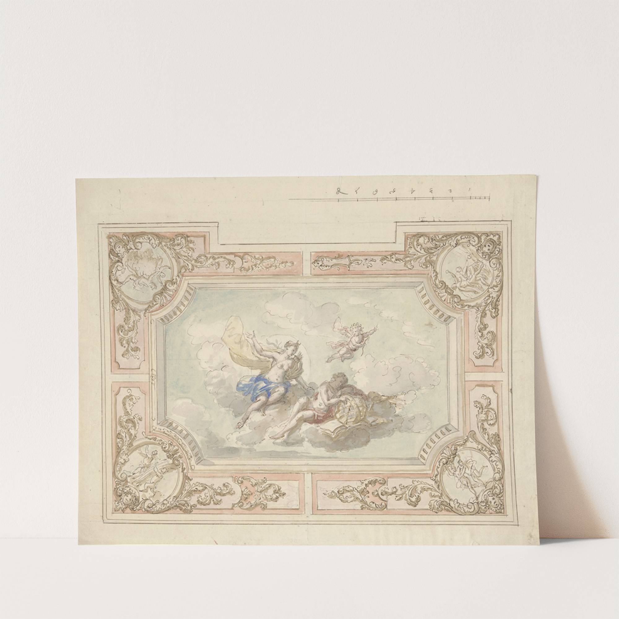 Ontwerp voor een plafondschildering met Diana en Endymion (1677 - 1755) by Elias van Nijmegen - Wall Art Print