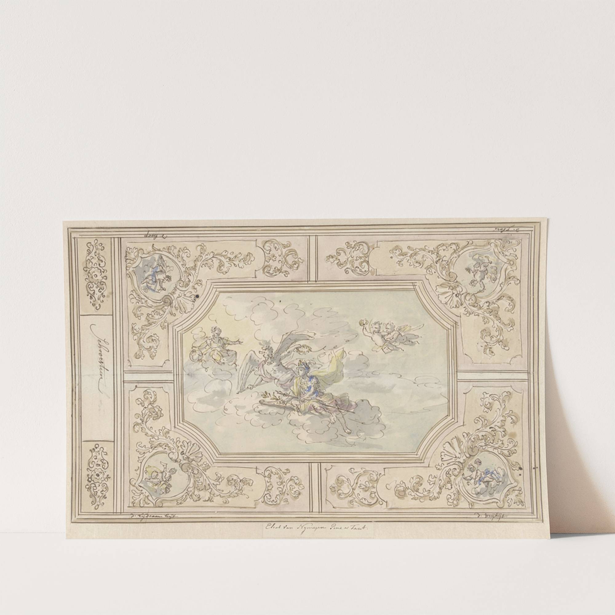 Ontwerp voor een plafondschildering met Eer gekroond door de Tijd by Elias van Nijmegen - Wall Art Print