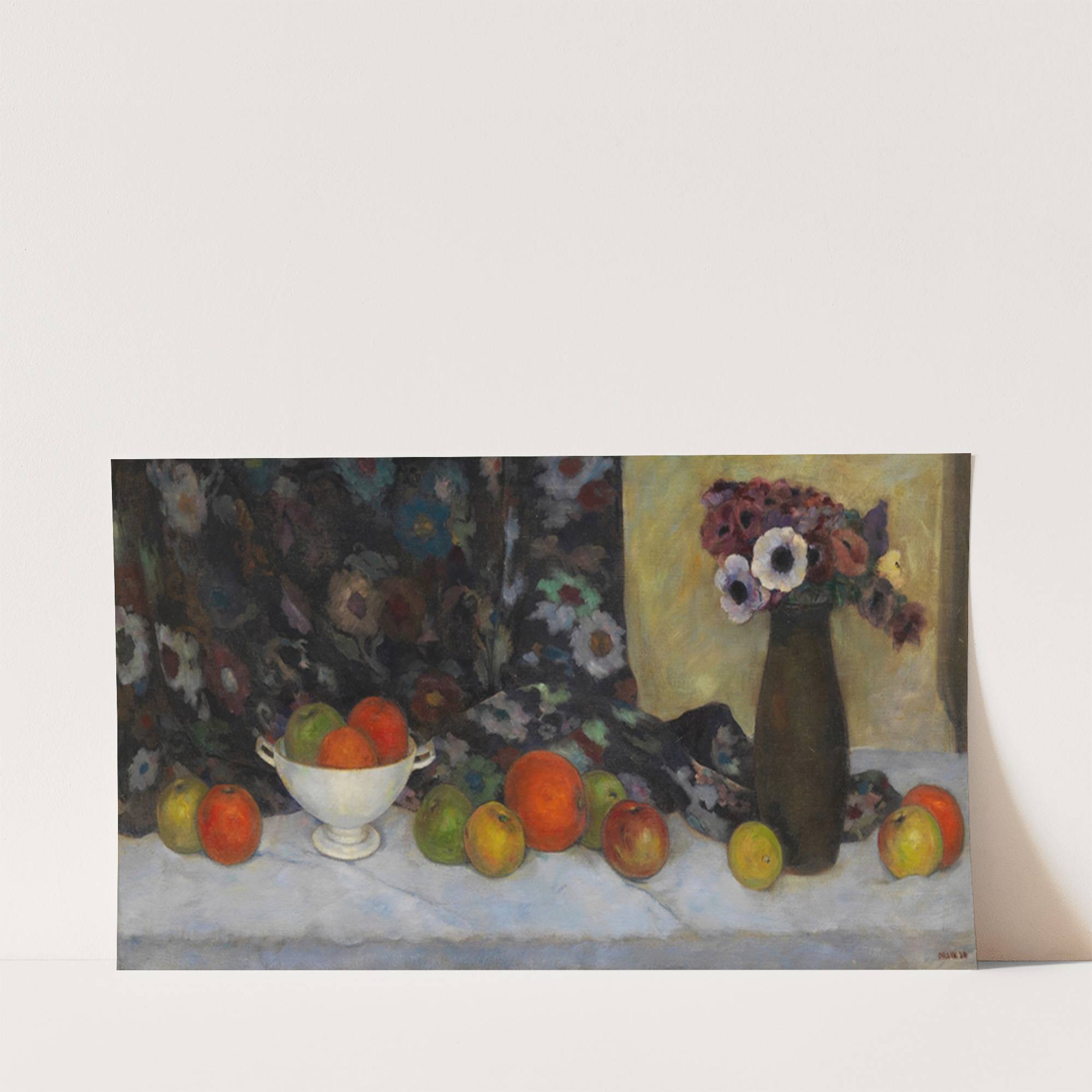 Früchtestillleben mit geblümtem Stoff und Vase (1930) by Emil Orlik - Wall Art Print