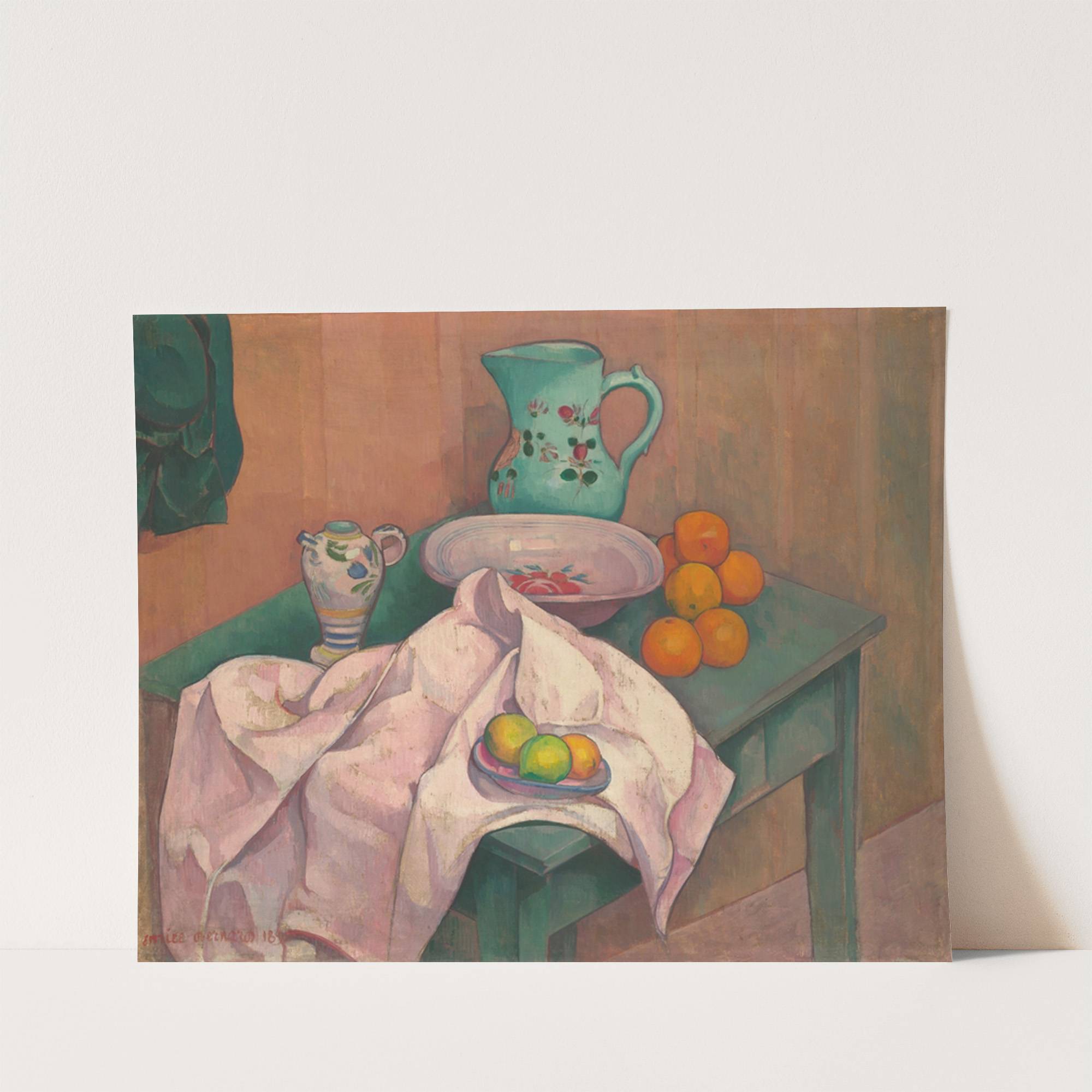 Nature morte (pichet, assiette, fruits sur serviette déployée) (1890) by Emile Bernard - Wall Art Print