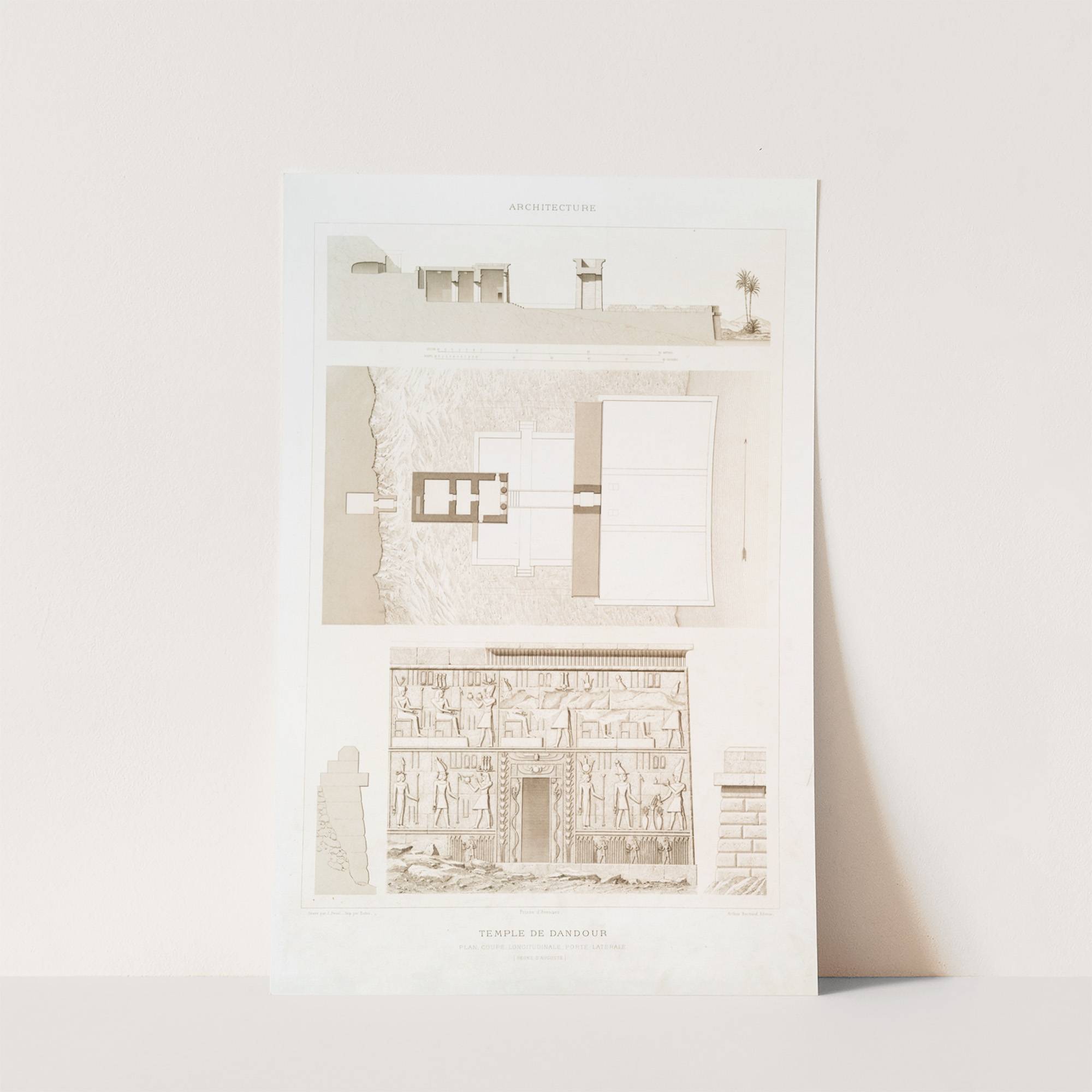 Architecture; Temple de Dandour ; plan, coupe longitudinale, porte latérale (règne d’Auguste) by Émile Prisse d'Avennes