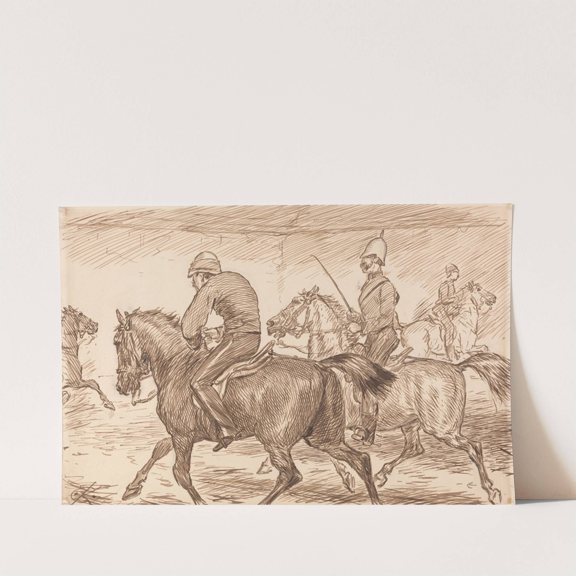 An Indoor Military Riding School With an Instructor Teaching Recruits to Trot by Charles Samuel Keene - Wall Art Print