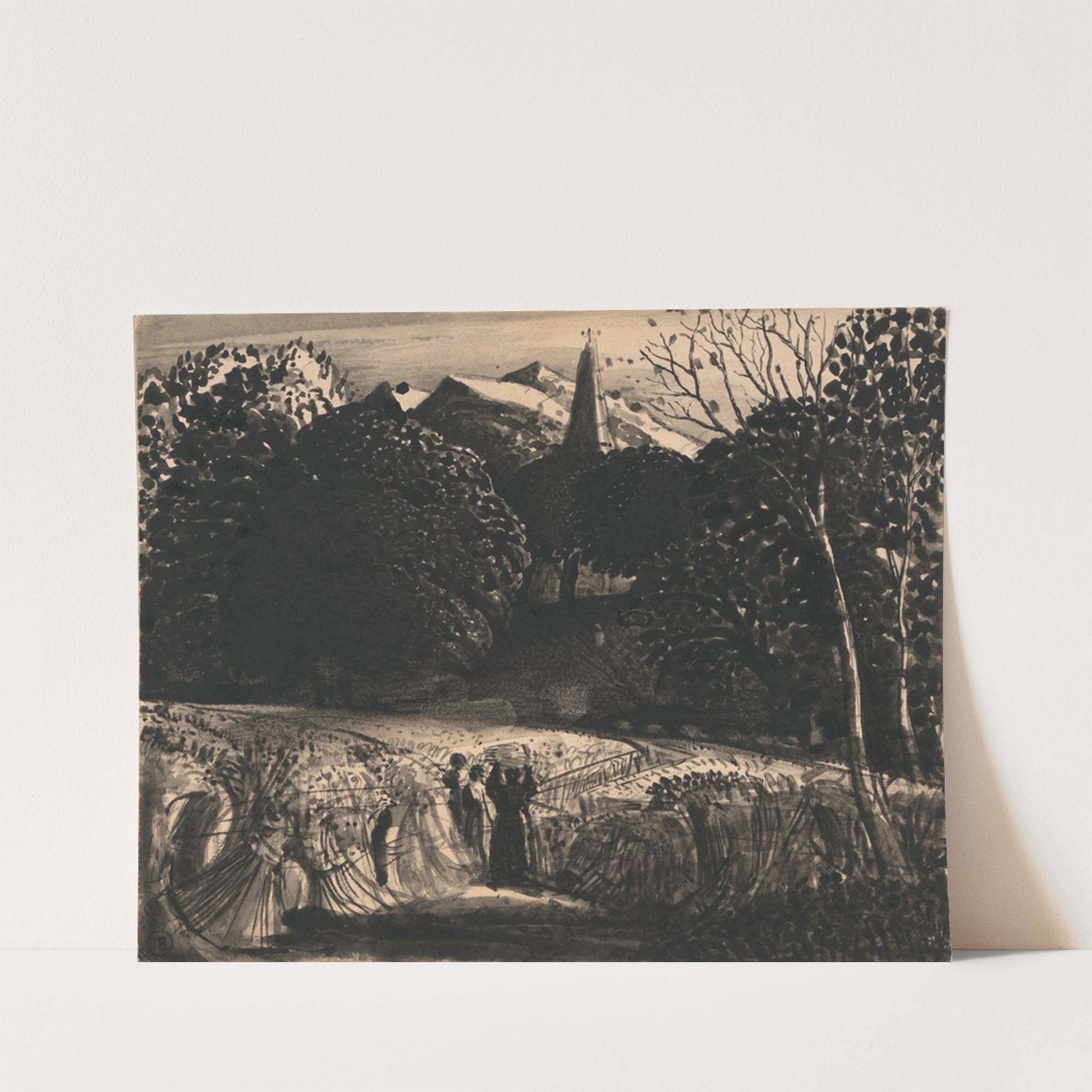 Cornfield and Church by Moonlight by Samuel Palmer - Wall Art Print
