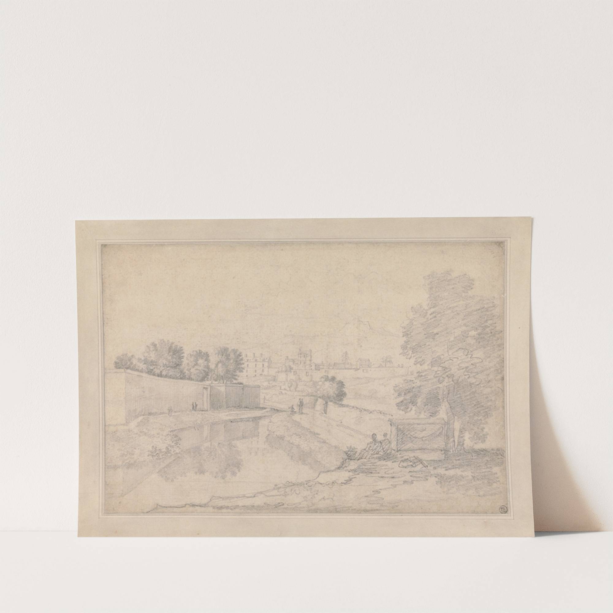 Italian Landscape with River Running Between High Wall at Left and High Bank at Right Towards a Small Town with Figures on the Banks by Richard Wilson - Wall Art Print