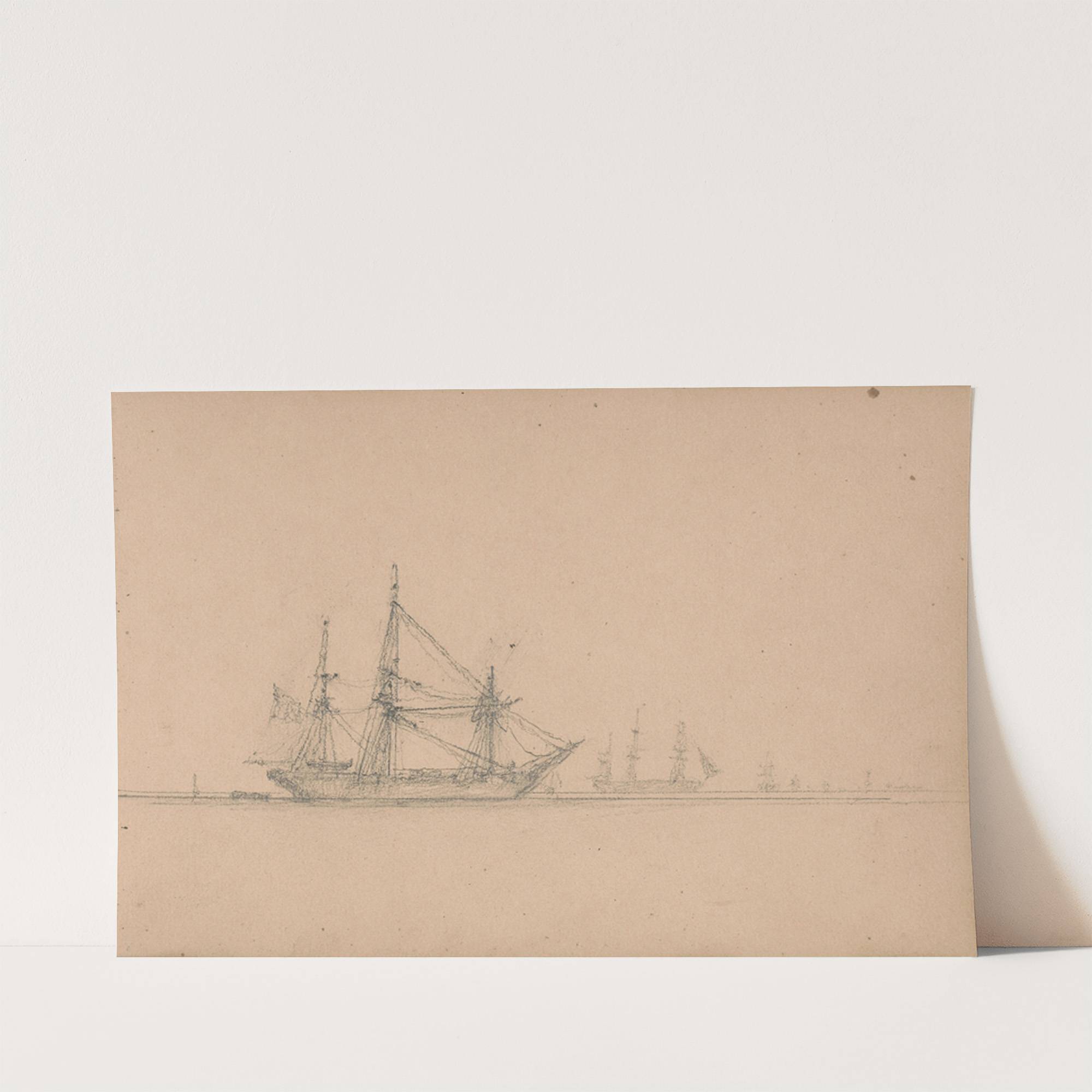 Sketch of a Ship with Ships in the Distance (1863) by Clarkson Stanfield - Wall Art Print