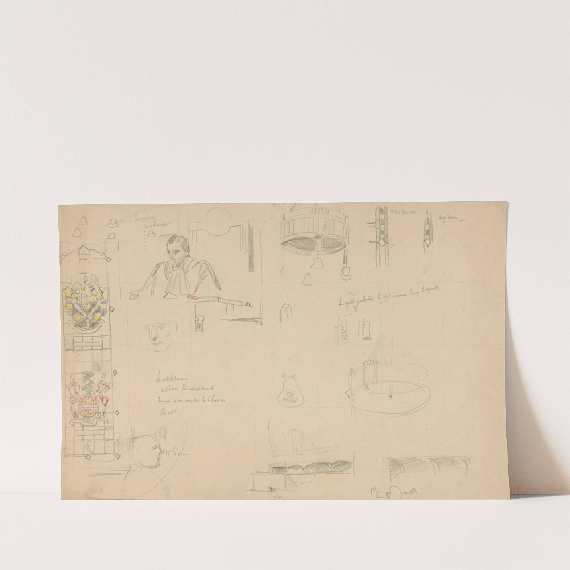 Studies van glas-in-lood en interieur voor het schilderij van de Nederlandse rechtbank in Londen, juni 1942 by Anton Abraham van Anrooy - Wall Art Print