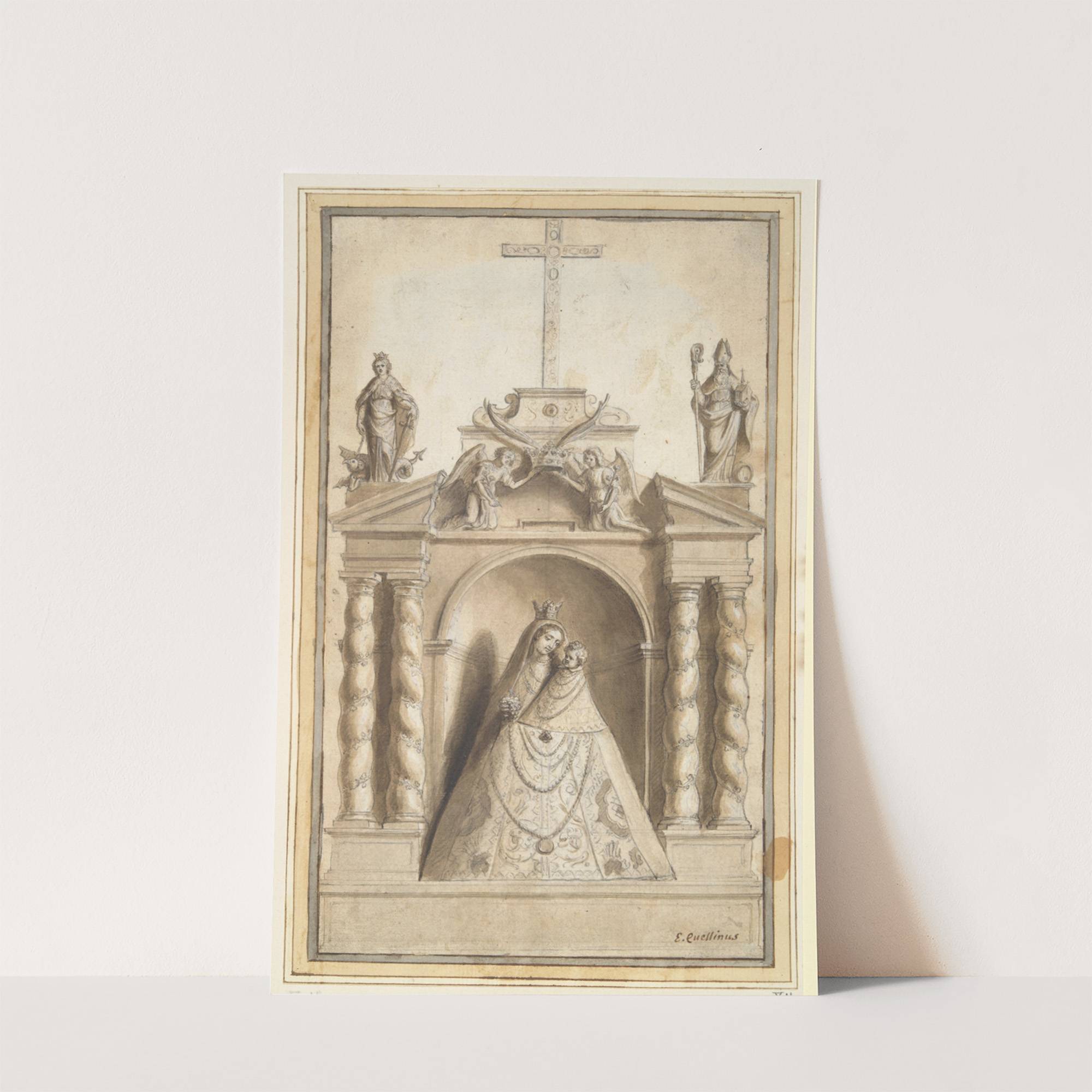 Statue of Virgin and Child in Niche by Erasmus Quellinus the younger  - Wall Art Print