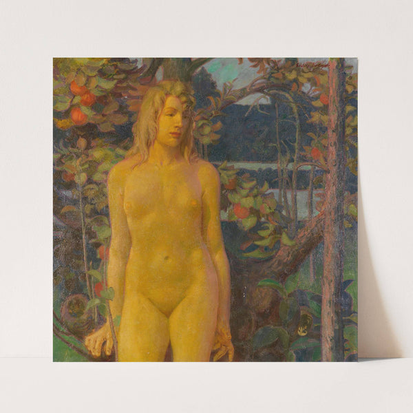 Stehender weiblicher Akt im Garten by Erich Erler - Wall Art Print
