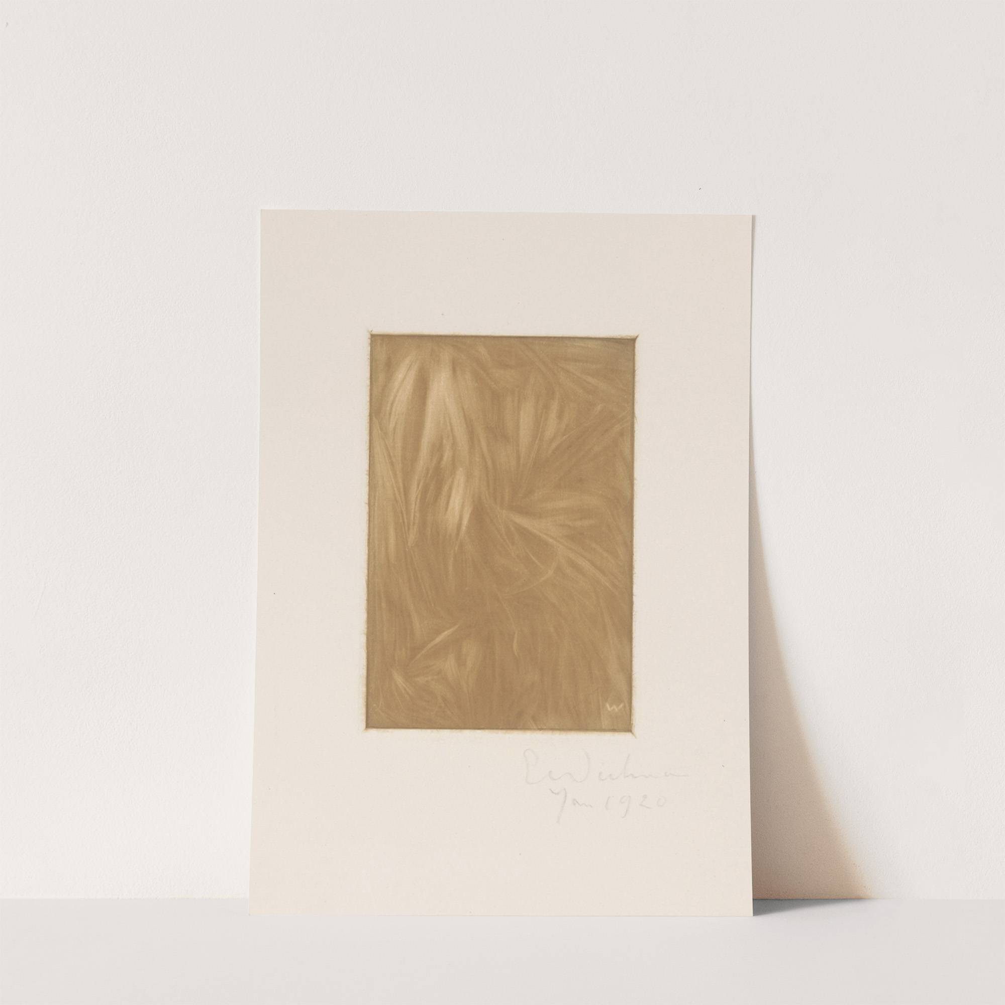 This art print features "Abstracte Compositie (1920)" by Erich Wichmann, showcasing an intricate abstract composition. The centerpiece is a mesmerizing swirl of golden-brown hues, reminiscent of flowing hair or soft fur. The brushstrokes are delicate yet dynamic, creating a textured,...