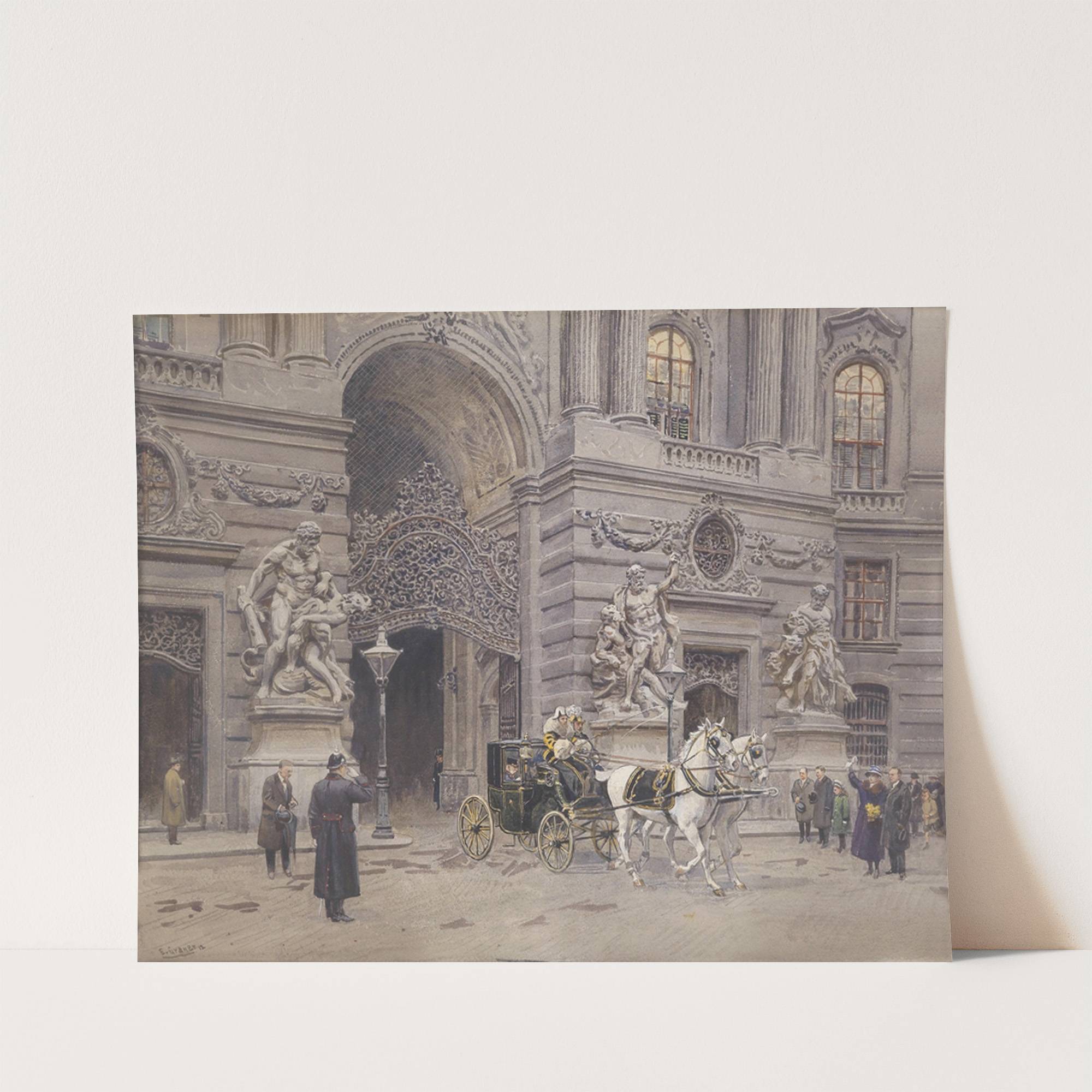Franz Joseph in seiner Kutsche aus der Burg kommend by Ernst Graner - Wall Art Print