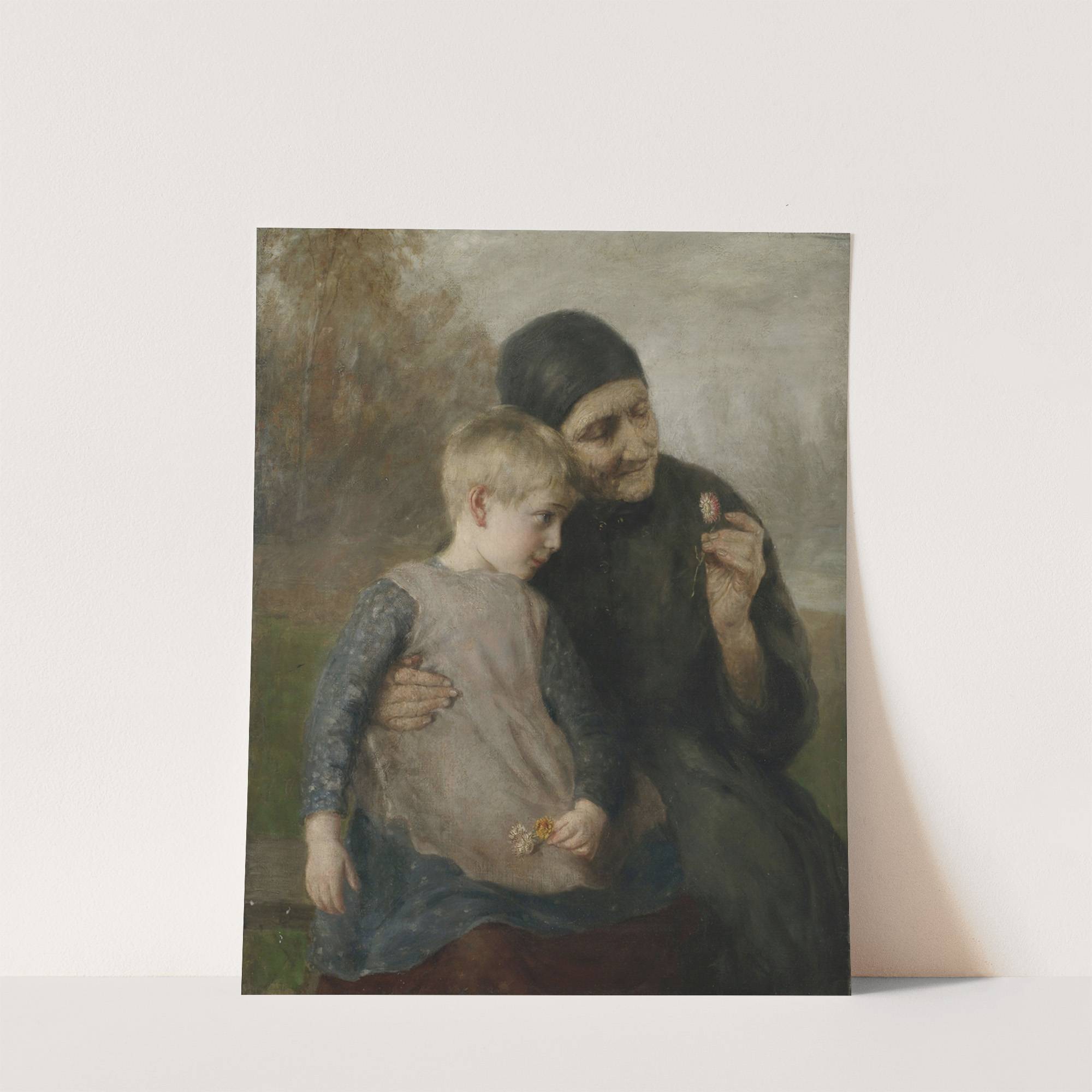 Bäuerin mit Enkelin vor Landschaftshintergrund by Ernst Karl Georg Zimmermann - Wall Art Print