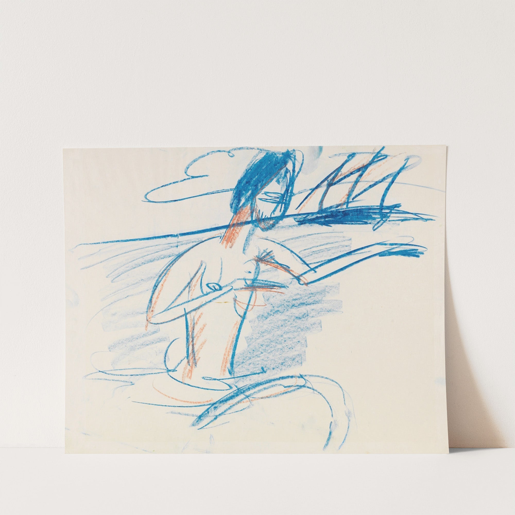 Badender Akt mit Segelboot (1913) by Ernst Ludwig Kirchner - Wall Art Print
