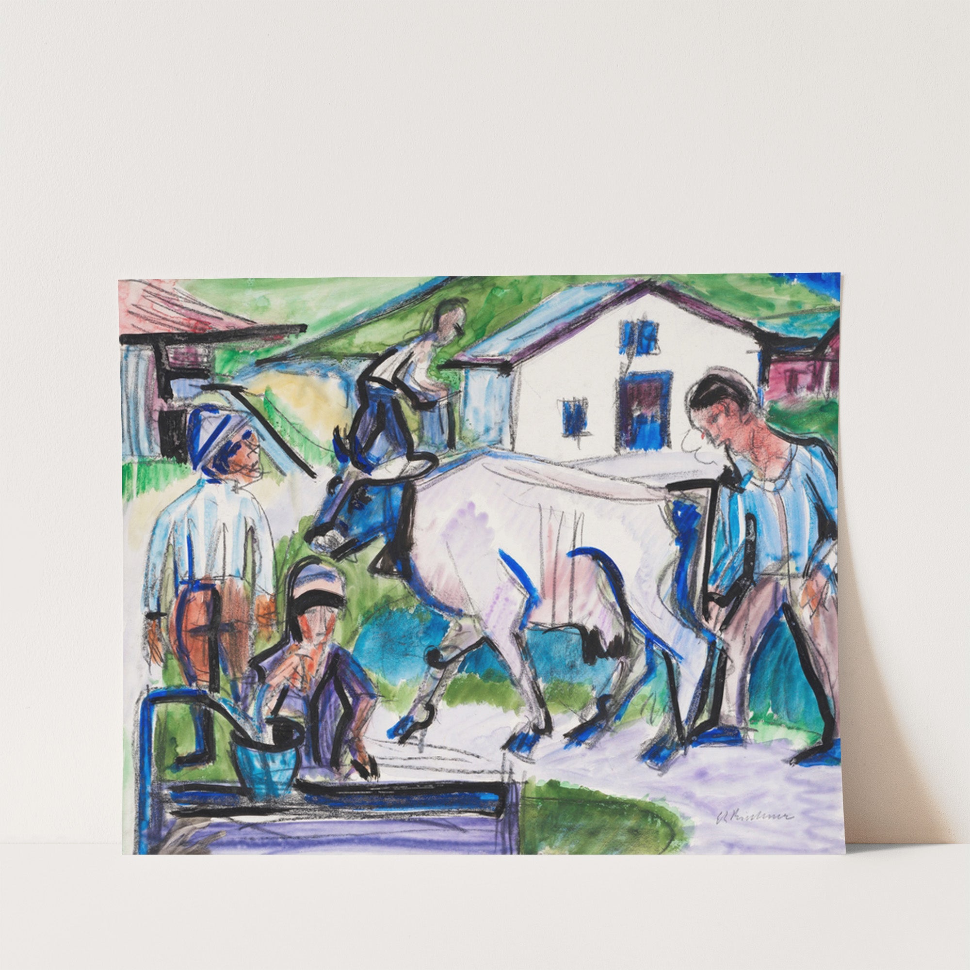 Bauern mit Kuh (1922) by Ernst Ludwig Kirchner - Wall Art Print