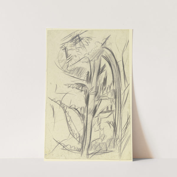 Blick durch zwei Fichten auf eine Hütte (ca. 1918) by Ernst Ludwig Kirchner - Wall Art Print