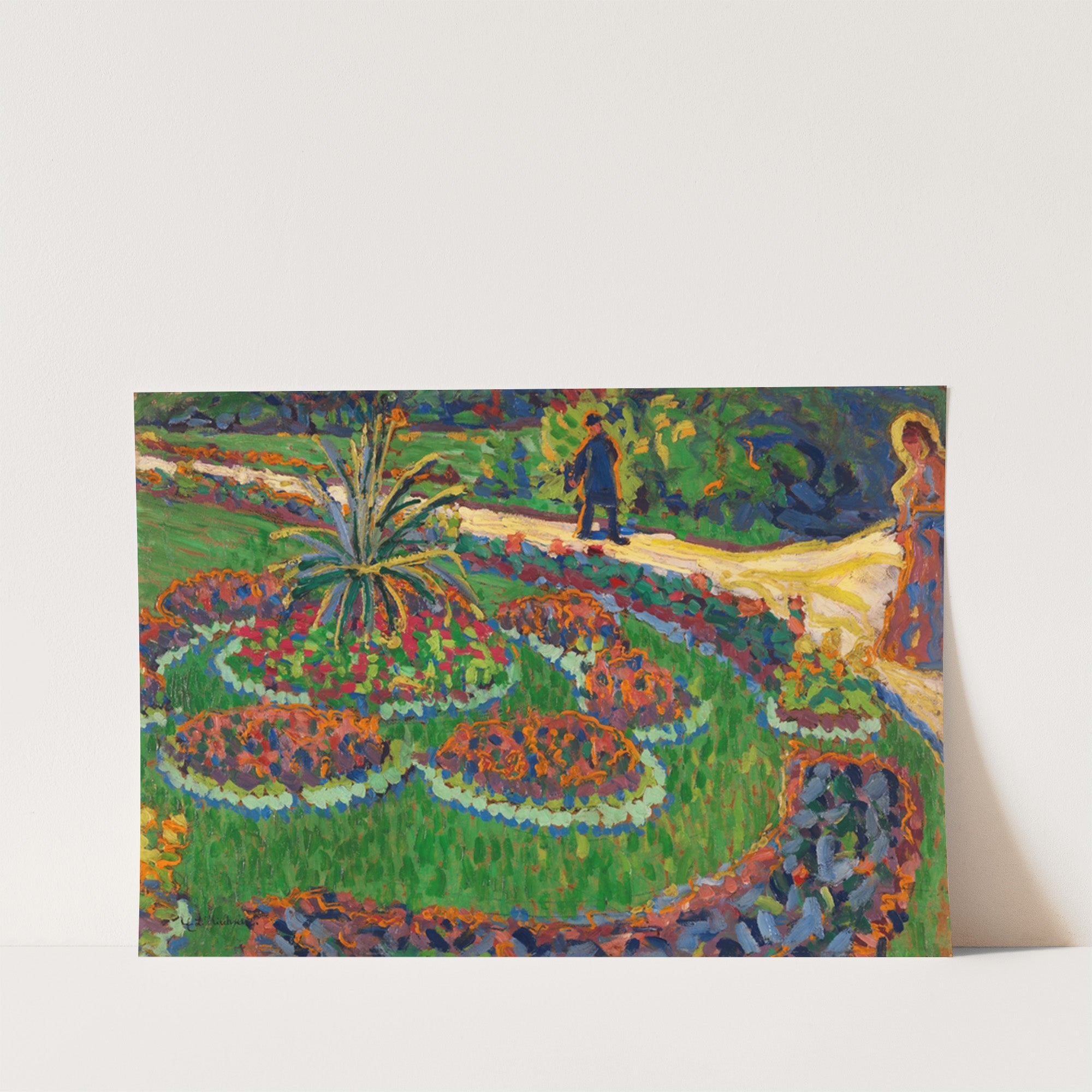 Discover the vibrant beauty of "Im Park" by Ernst Ludwig Kirchner, a stunning oil painting that captures the essence of a colorful garden scene with remarkable artistic flair. This dynamic composition is bursting with rich hues of red, orange, green,...
